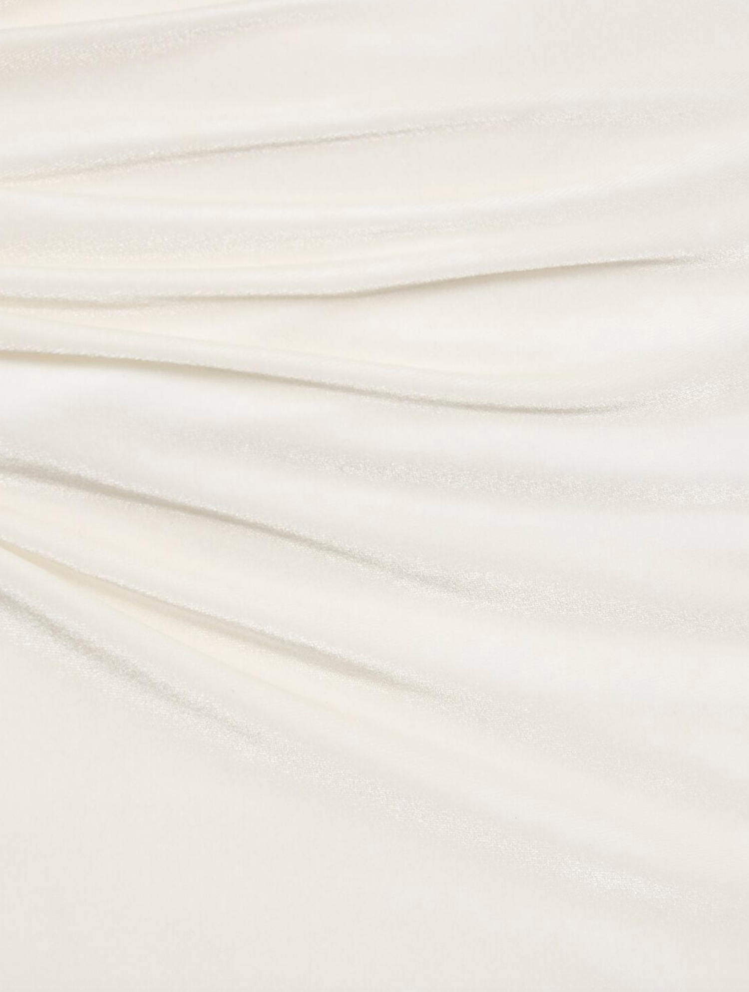 Material: It is typically crafted from slinky, lightweight glossed-jersey or velvet, often a blend of polyester and spandex/elastane for a stretchy, close fit.