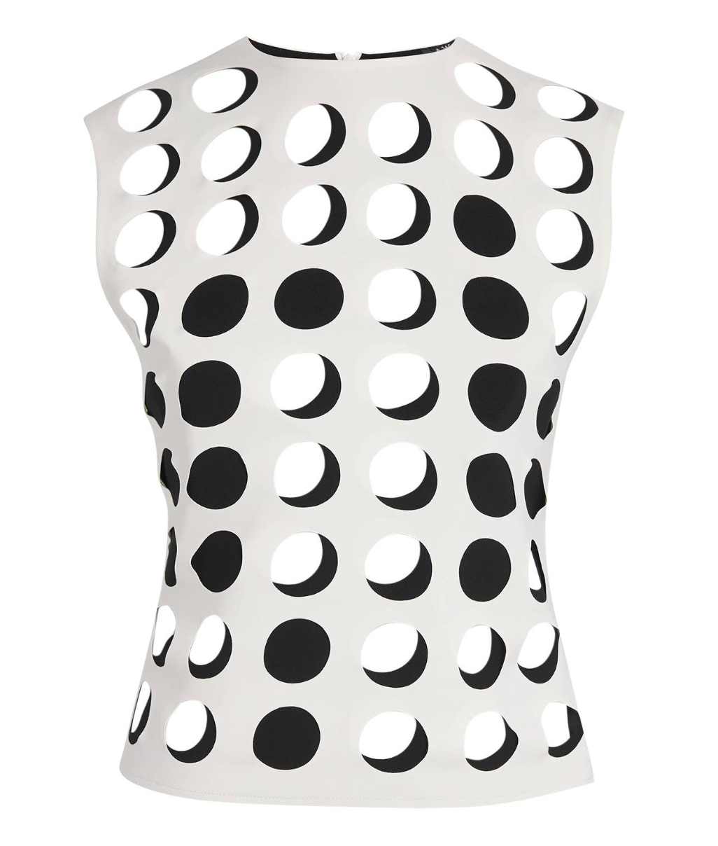Cut to a slim silhouette, this top features a round neckline and sleeveless design. Layered cut-out detailing throughout adds depth and texture.