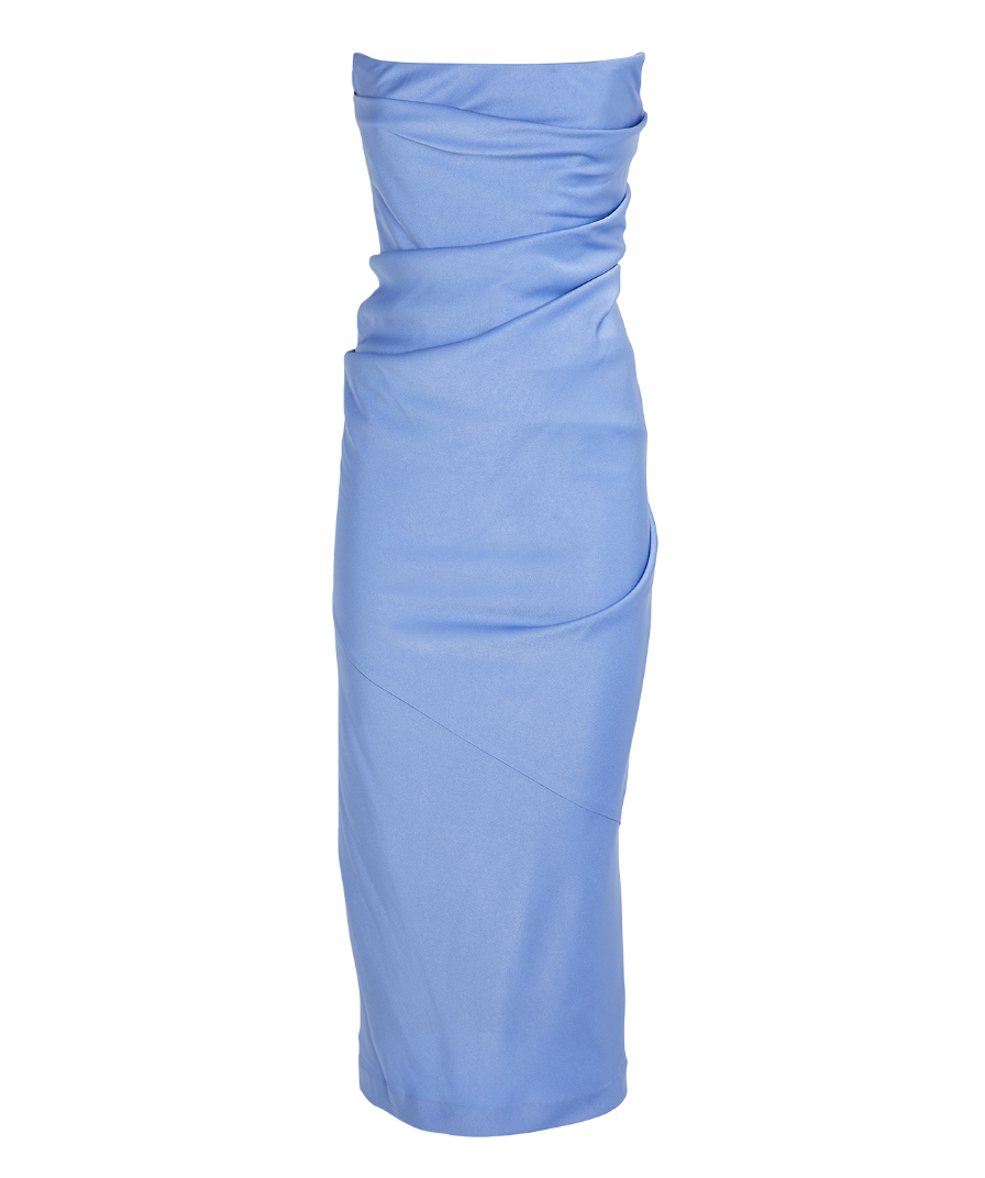 Alex Perry Draped Strapless Crepe Midi Dress