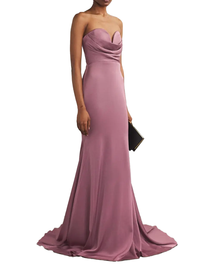 This Alex Perry gown is crafted from a mid-weight satin crepe that drapes beautifully. The sweetheart neckline and sleek silhouette create a timeless and elegant look. The gown features a hidden zipper closure at the back. It is available for bespoke alterations in-store or at home (within two miles of the Harrods Knightsbridge store).