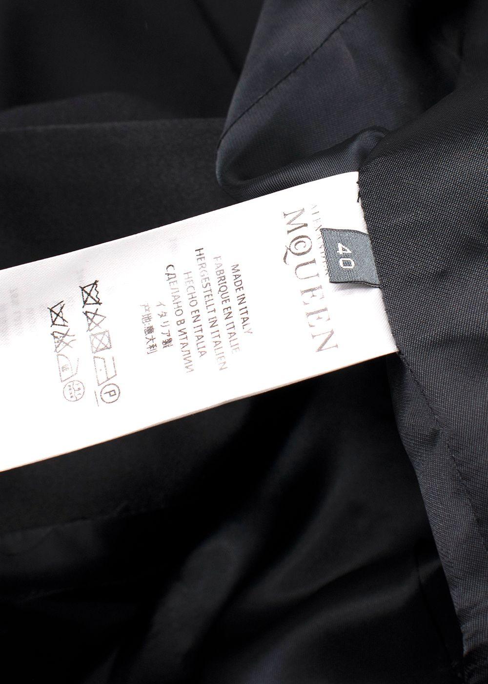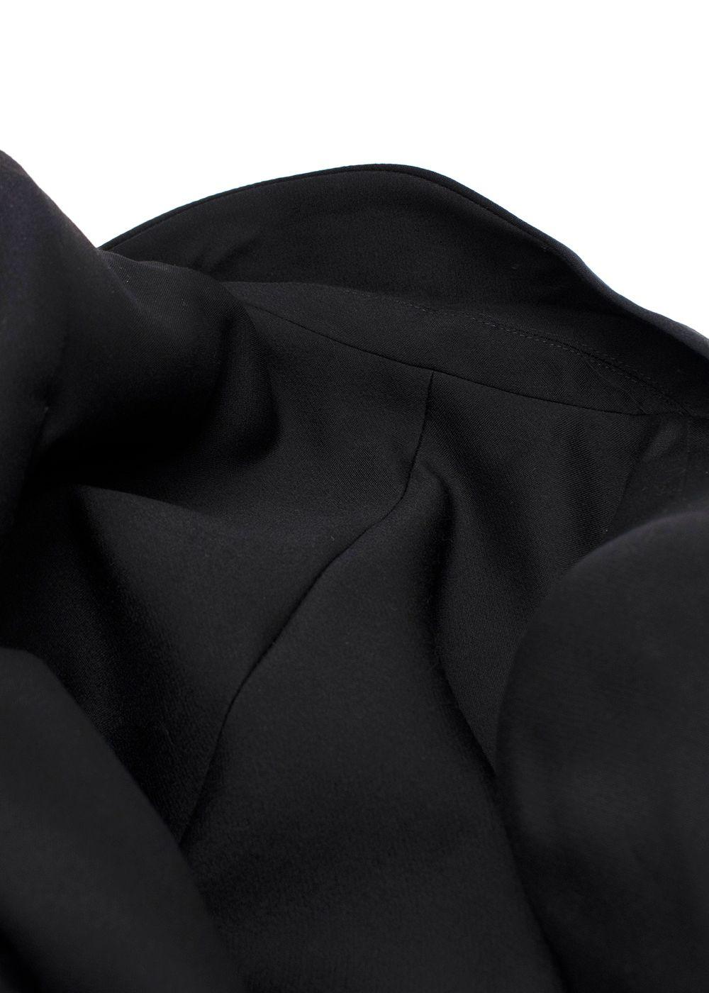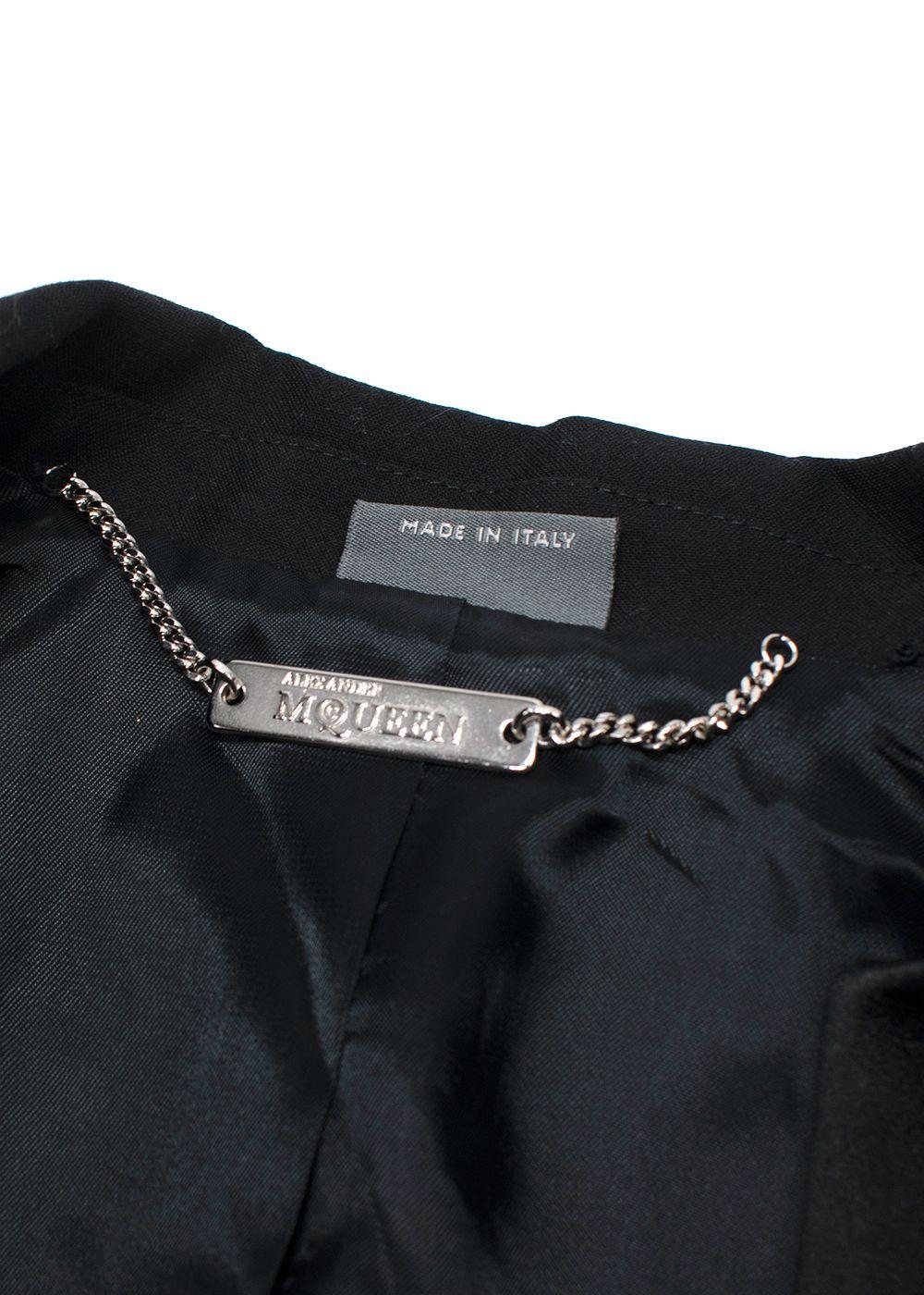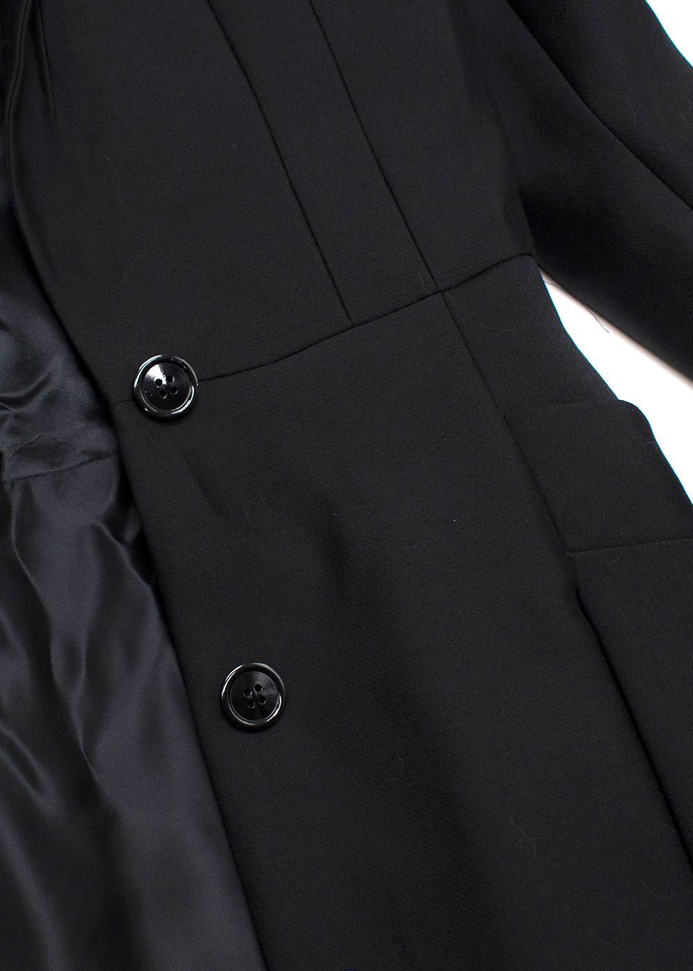 Details: Concealed front button fastening, peak lapels, and deep rear/side box pleats.