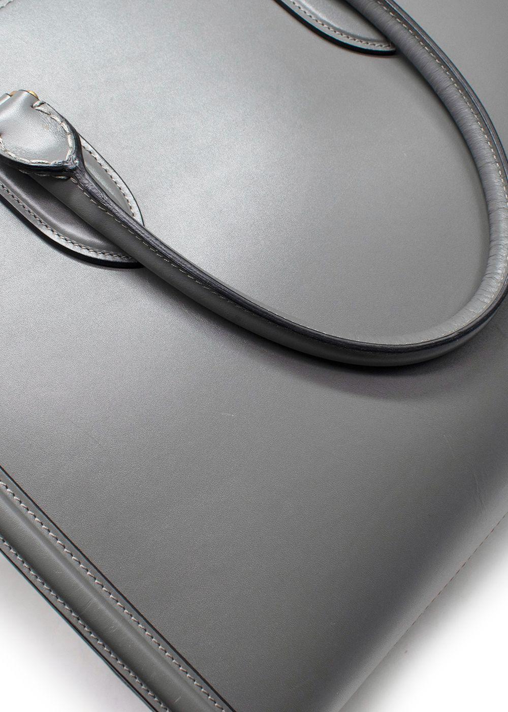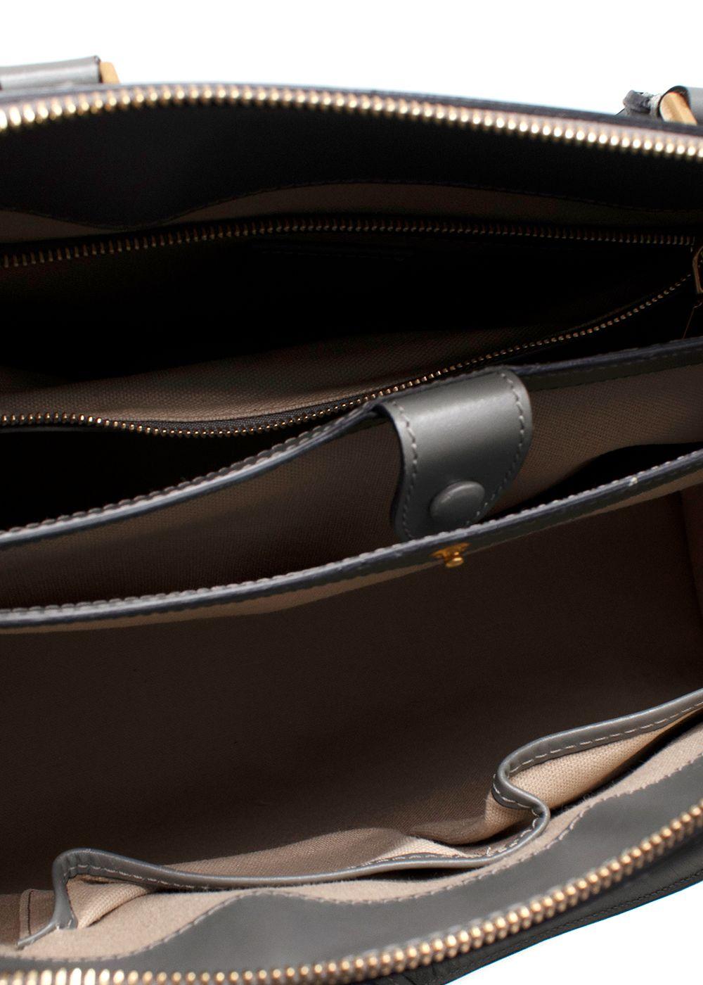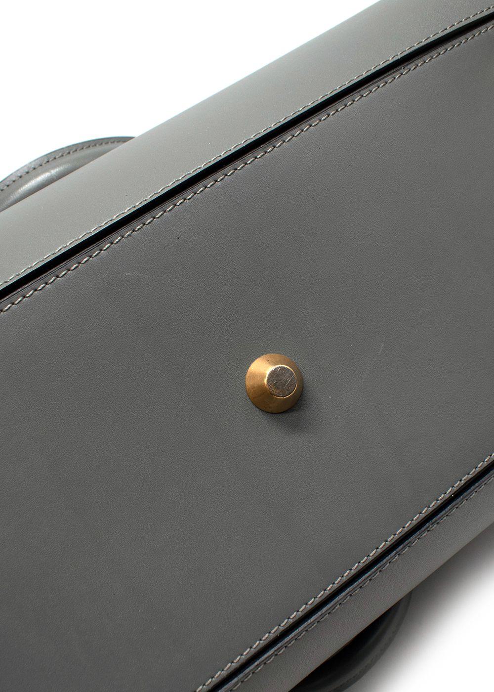 Style: structured tote / top-handle handbag (with two rolled leather top-handles, rigid form, and base feet).