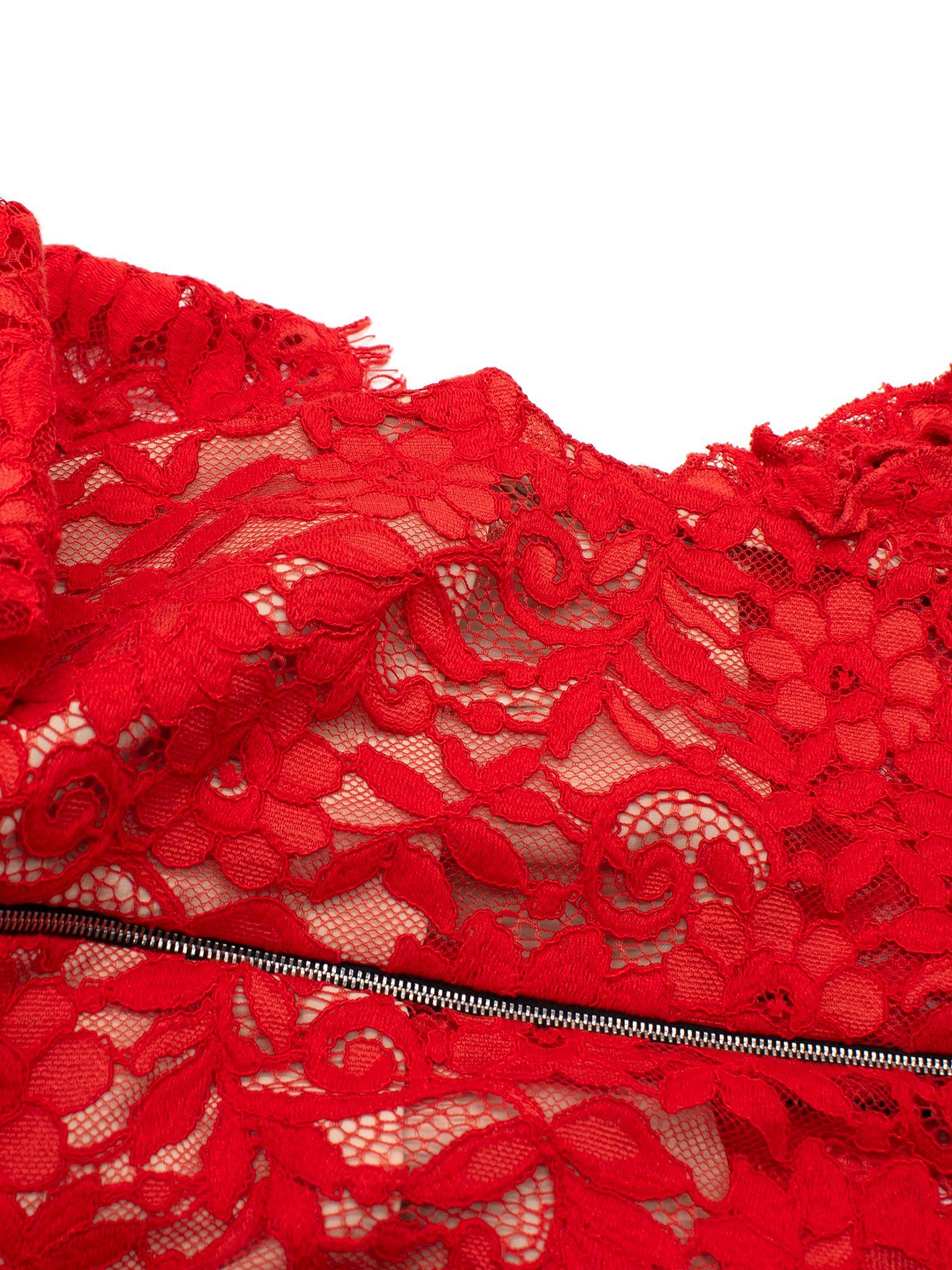 -Intricate floral lace overlay with a nude lining for a striking contrast