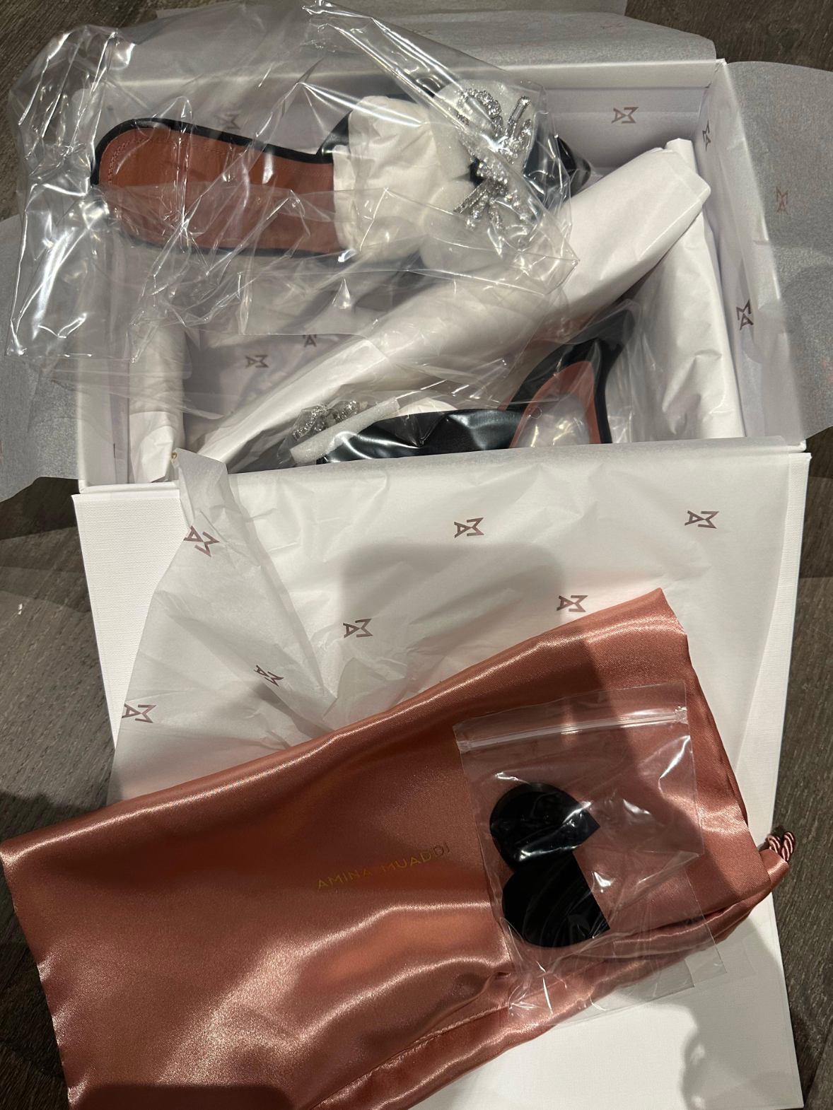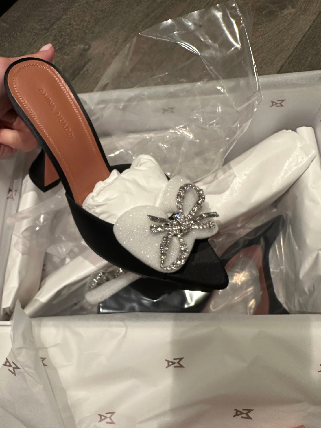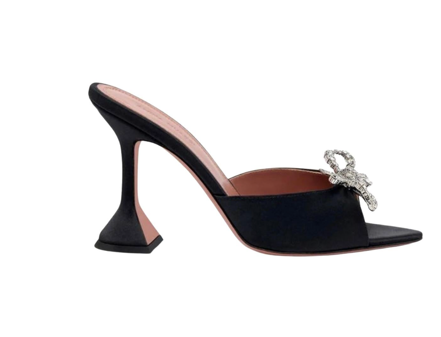 Amina Muaddi rosie mules black crystal satin 95.