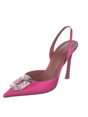 Amina Muaddi Embellished Pink Satin Slingback Sandals