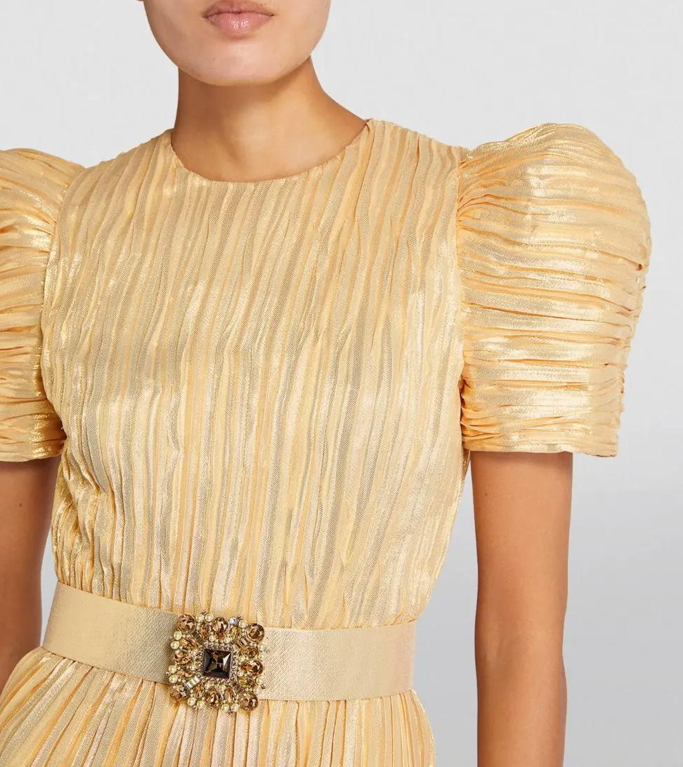 Andrew Gn Silk-Blend Puff-Sleeve Belted Gown