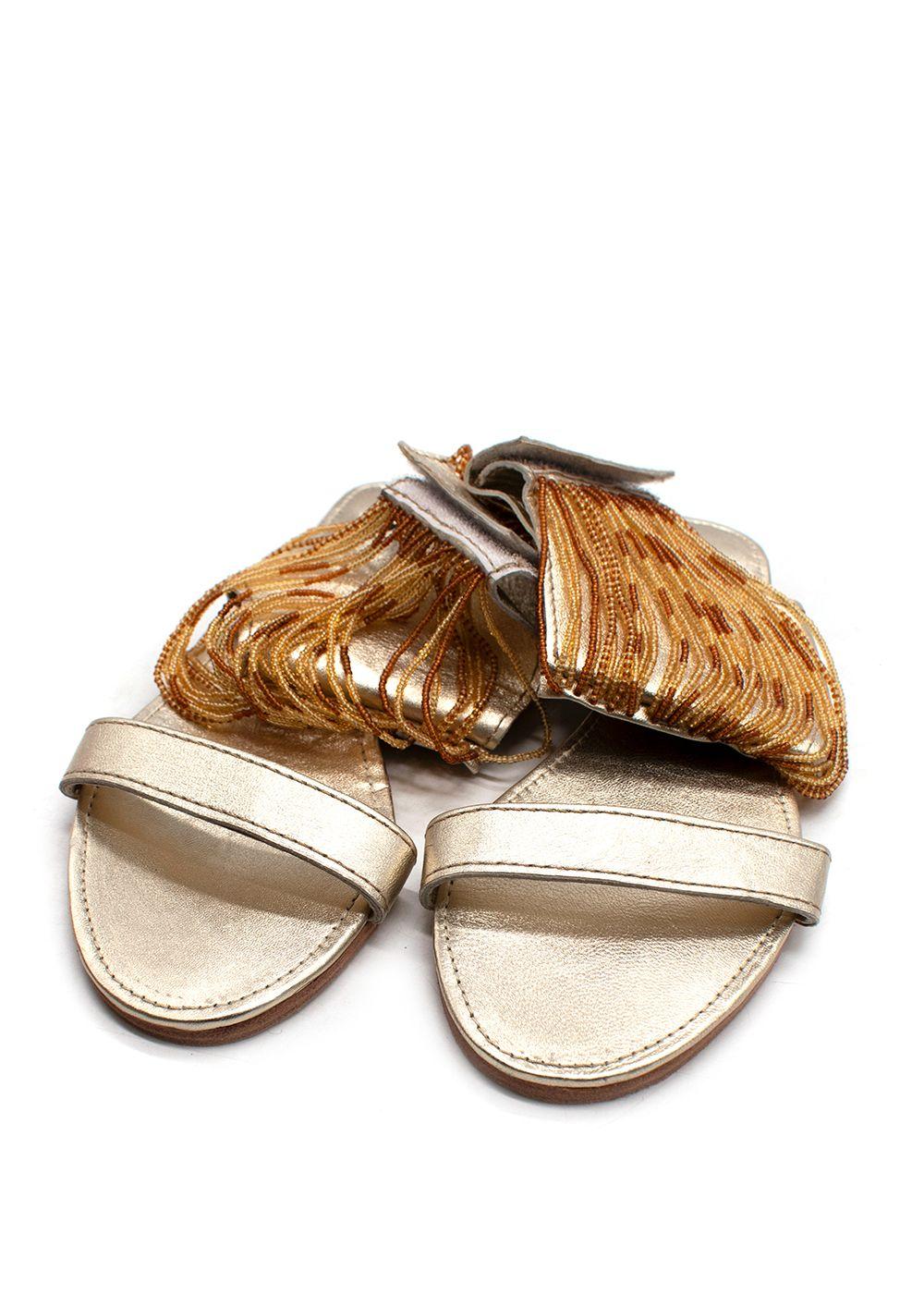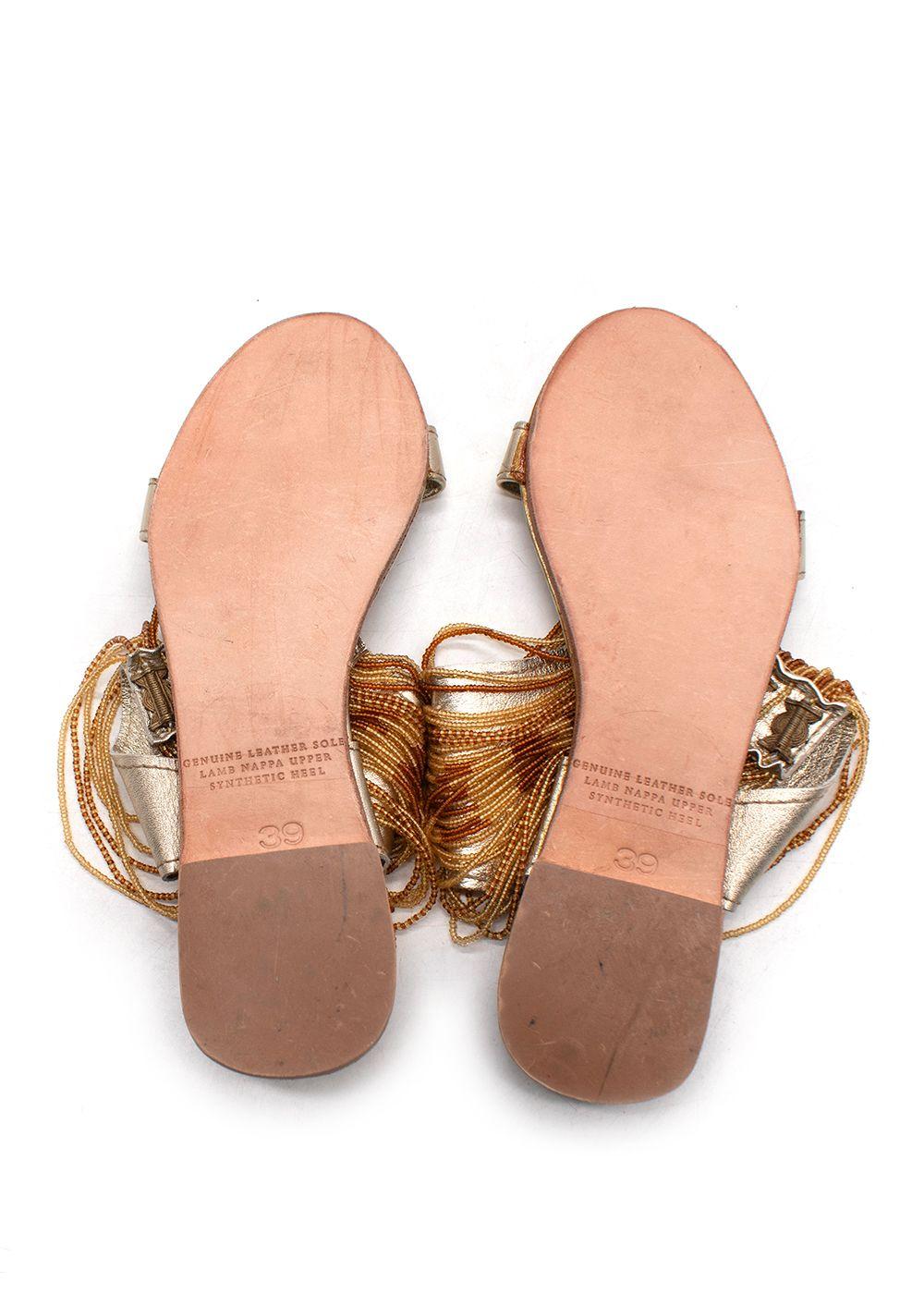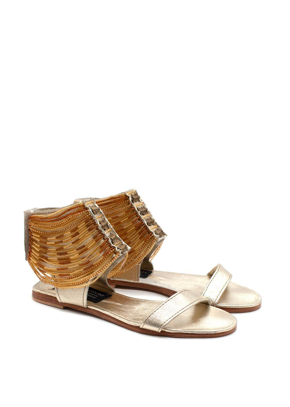 Anna Trzebinski Beaded Gladiator Nappa Leather Flat Sandals
