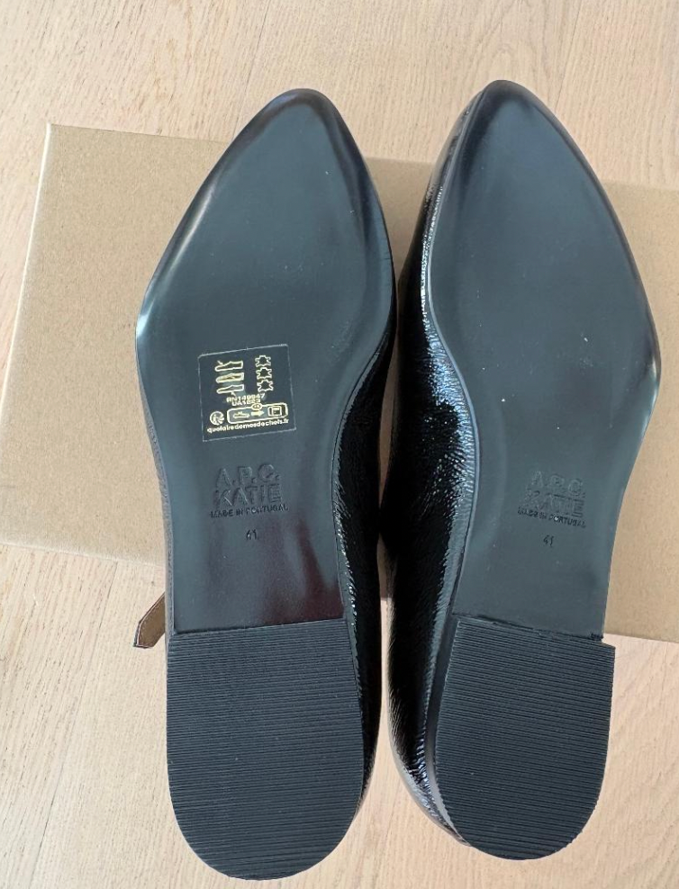 BLACK PATENT LEATHER POINTED "KATIE' FLATS WITH T STRAP DETAIL