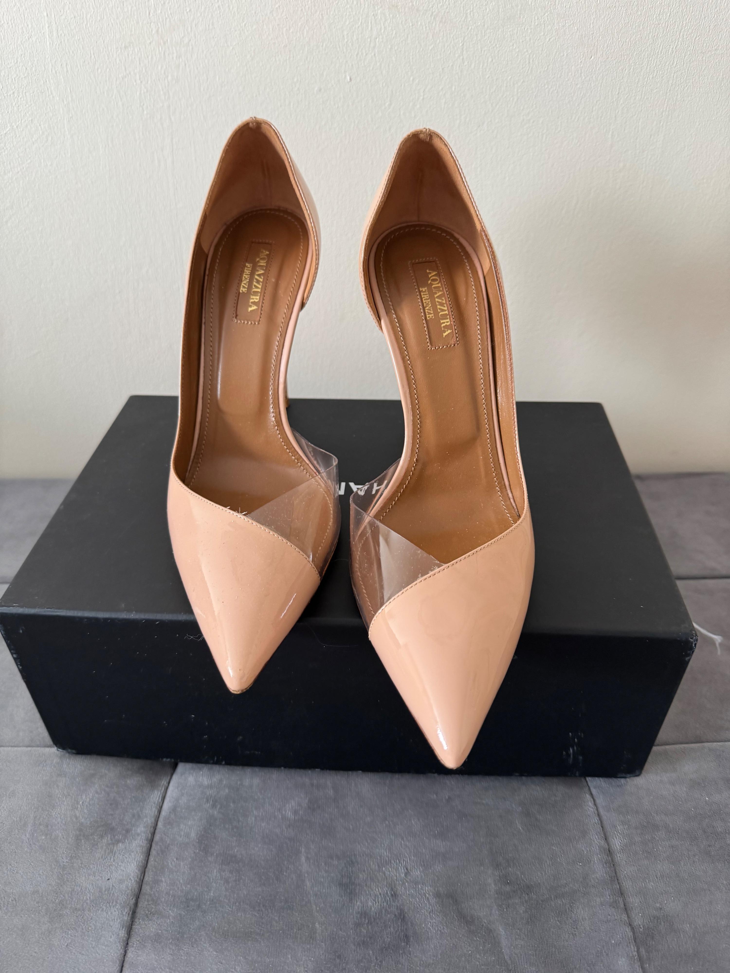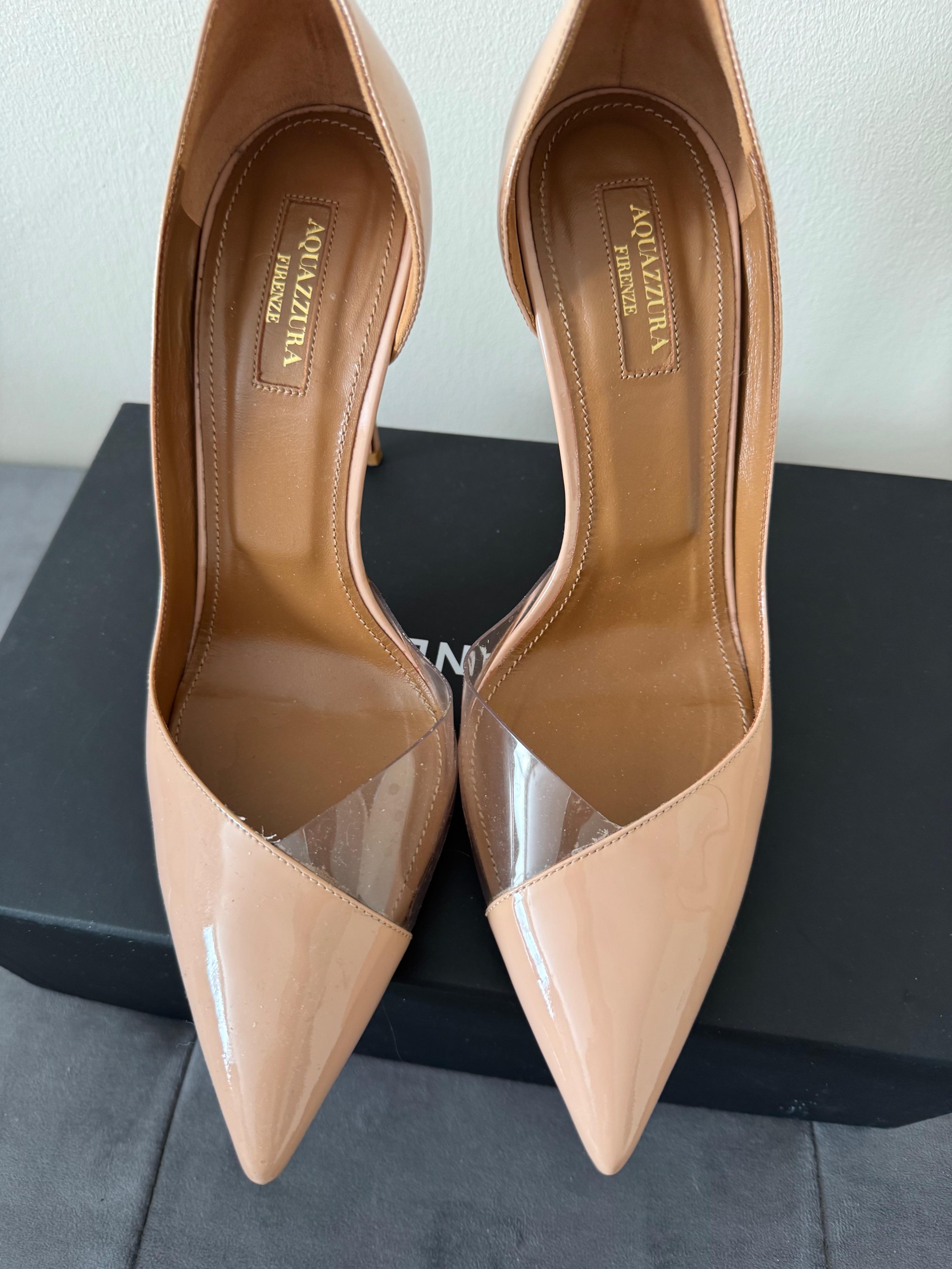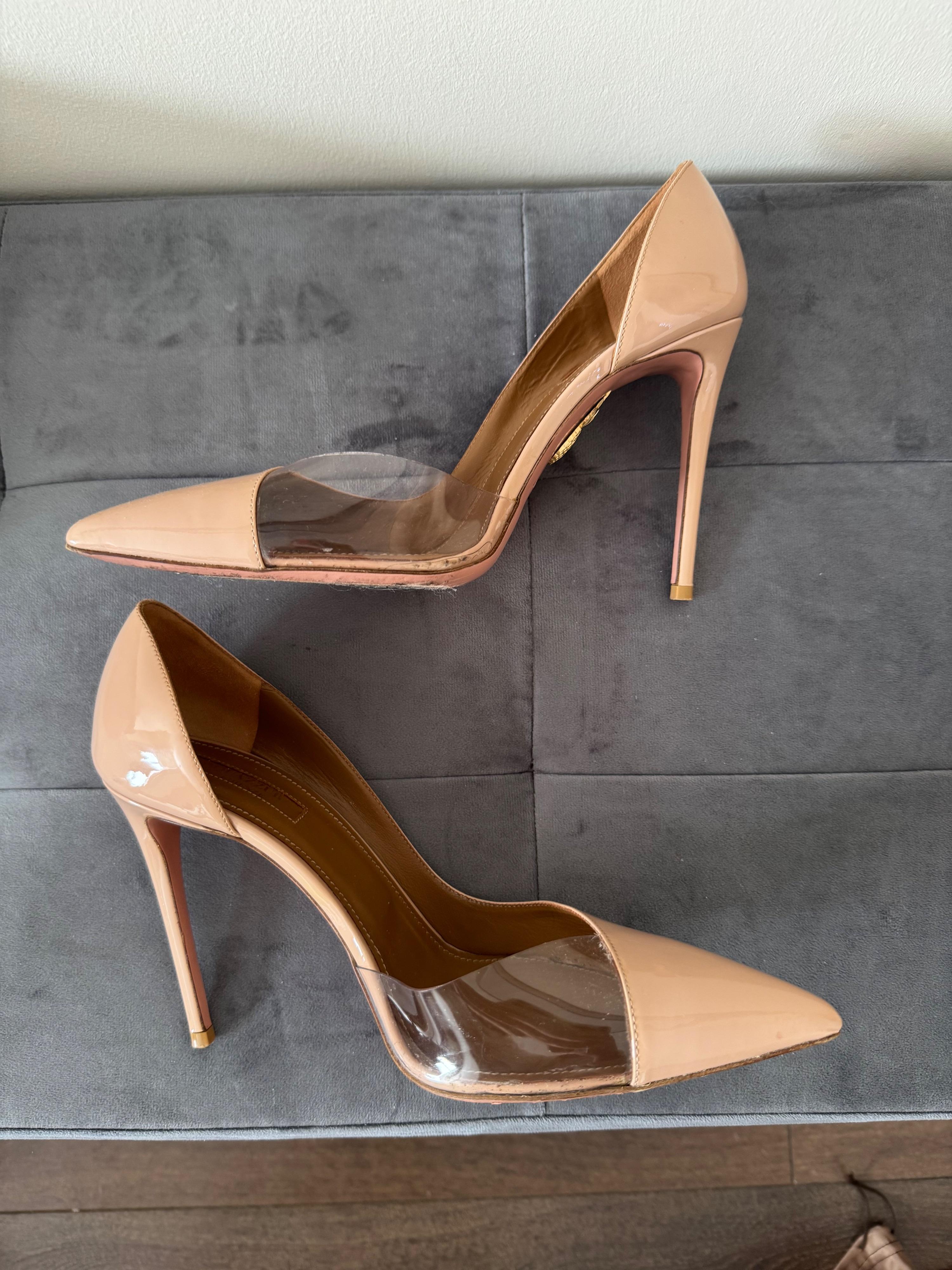 Aquazzura patent leather heels with pvc part.