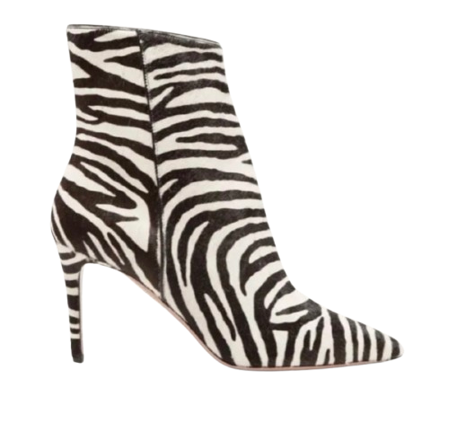 Aquazzura Alma 85 Zebra Print Calf Hair Ankle Boots Zebra Print - the name of the model.