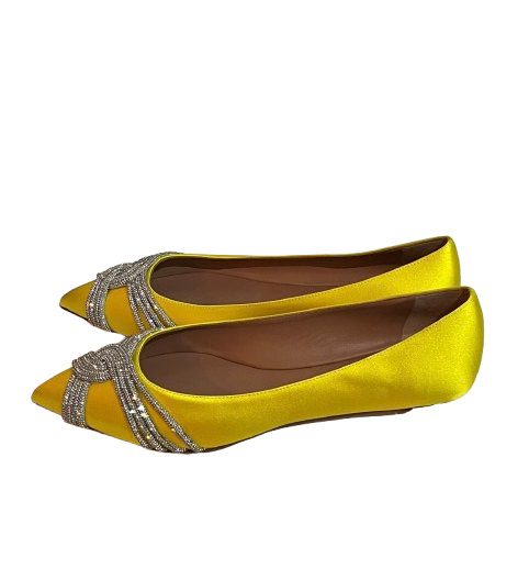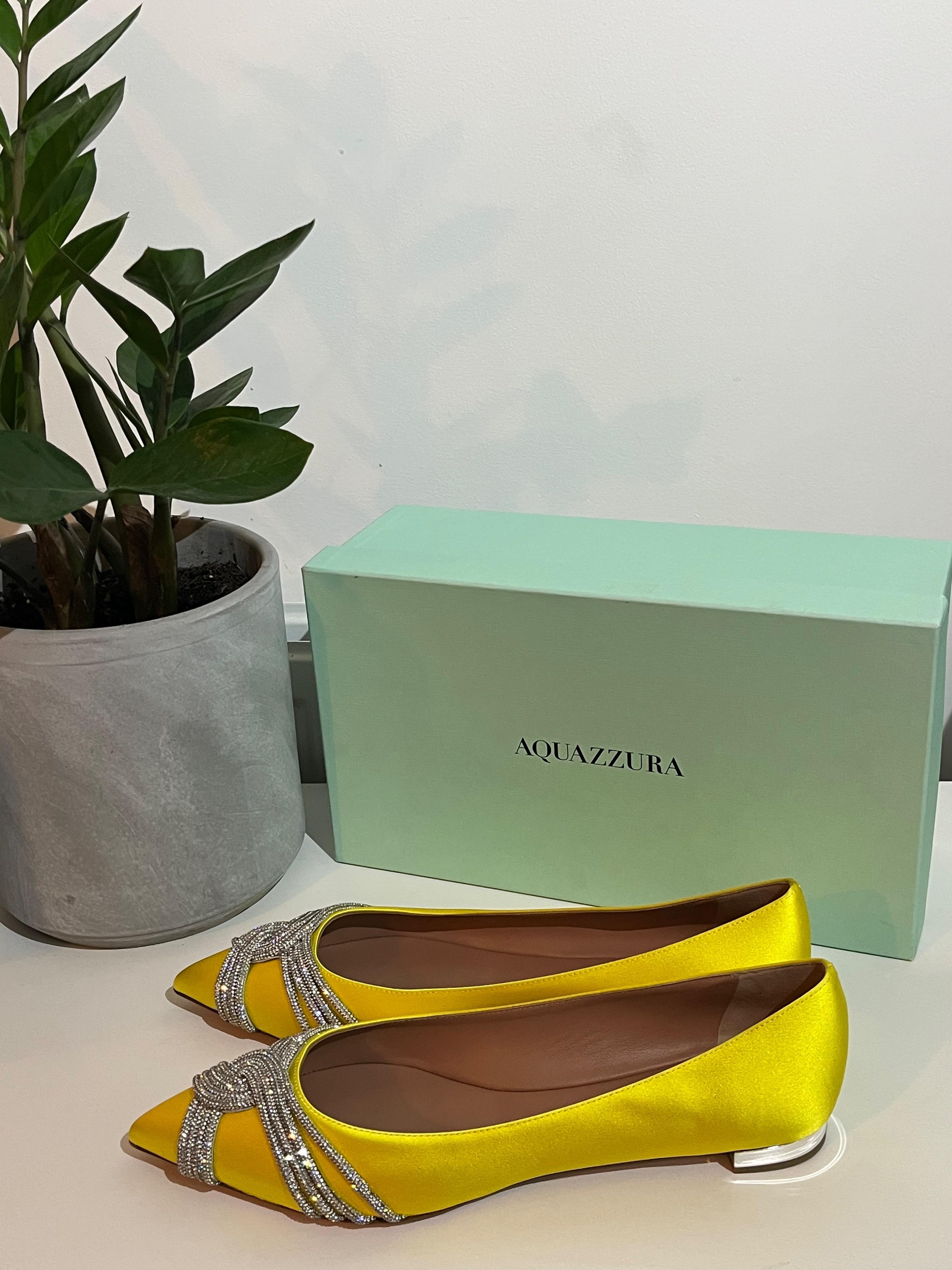 Aquazurra Yellow Satin Gatsby Ballet Pumps