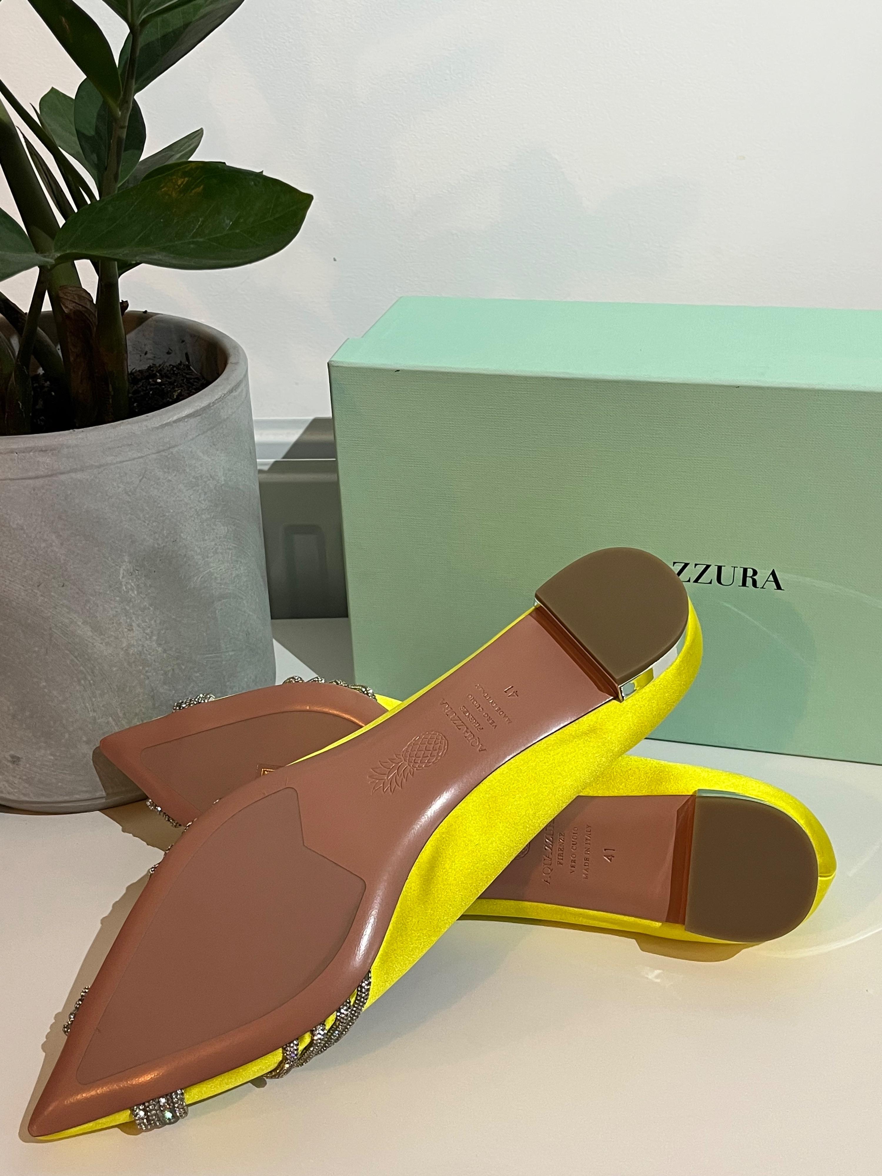 Aquazzura Gatsby Ballet Flats – Satin Fluo Yellow | Rare Statement Shoe