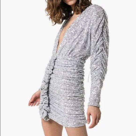 Attico silver sequin embellished rushed mini dress