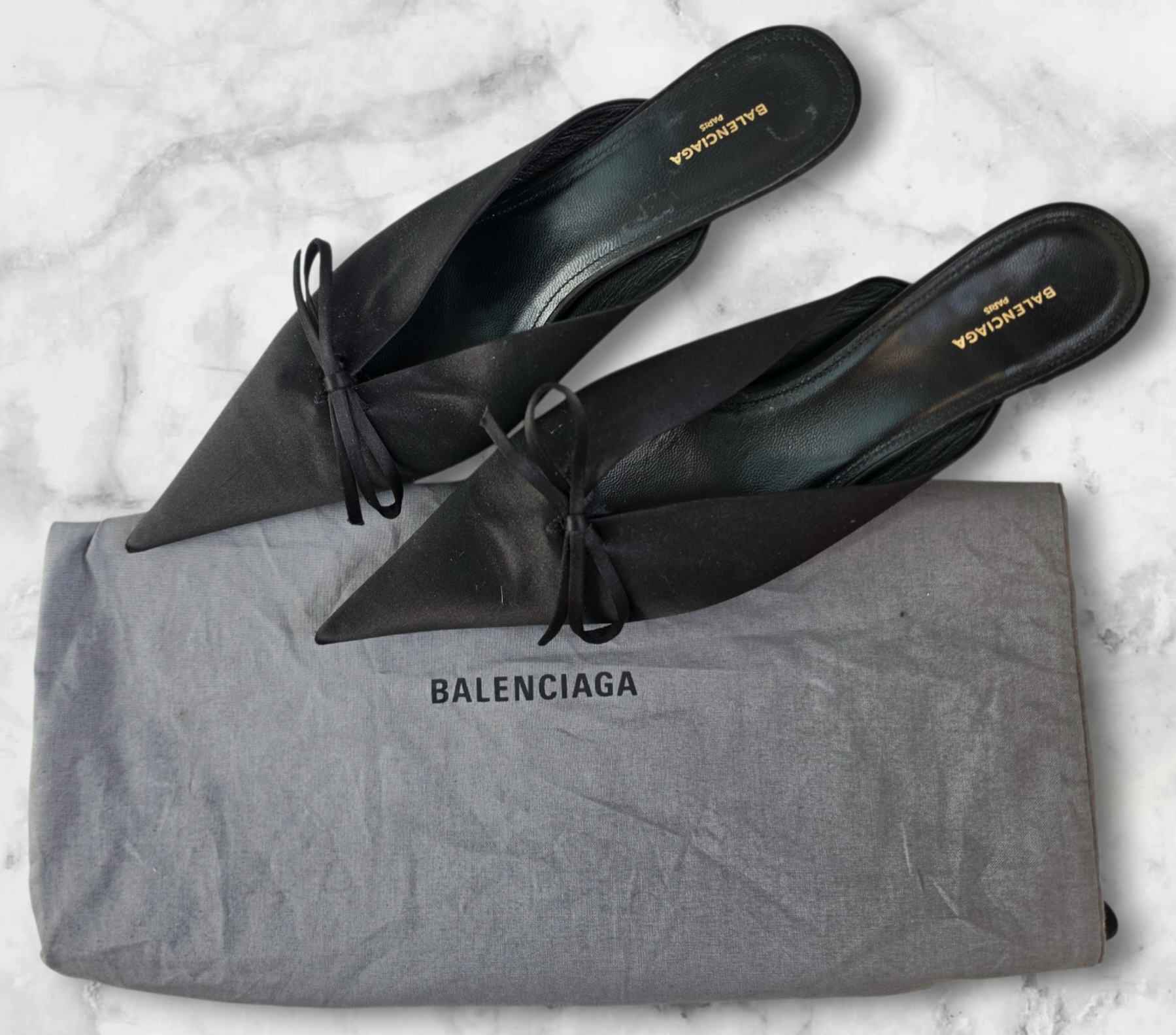 Balenciaga Black Satin Mules