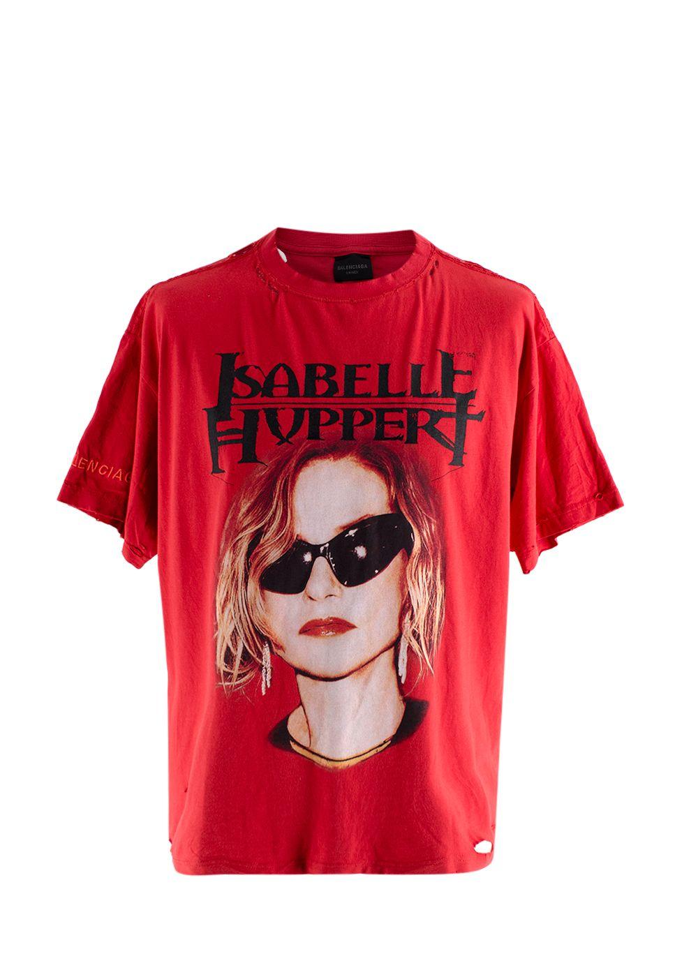 The Isabelle T-shirt is subversive, cool and quintessentially Balenciaga. Crafted from distressed cotton jersey for a worn-out effect, it features Isabelle Huppert's print at the chest and signature at the back.