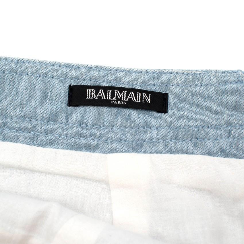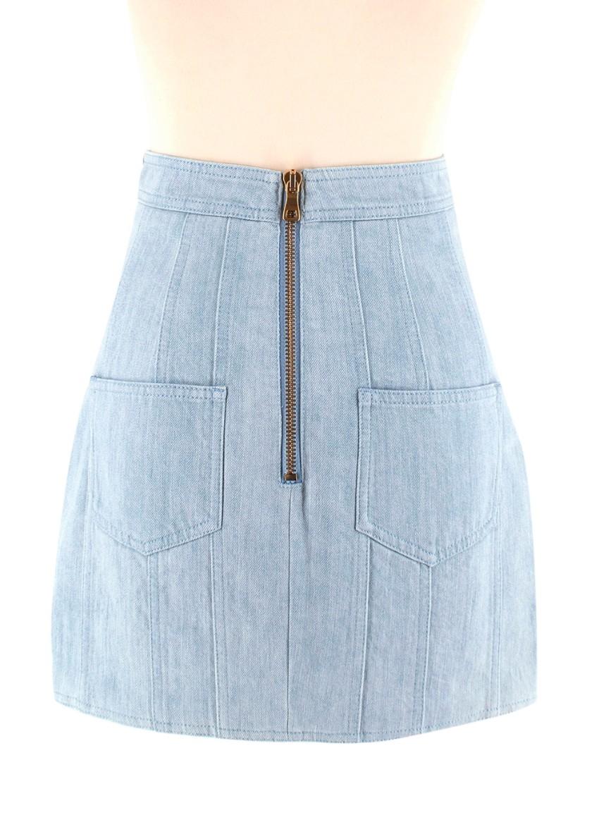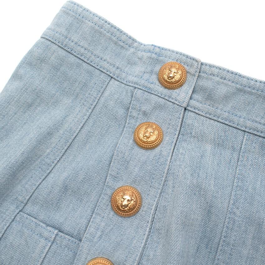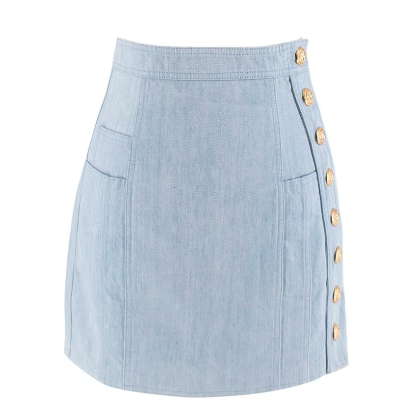 Balmain Blue Cotton Denim Buttoned Mini Skirt
