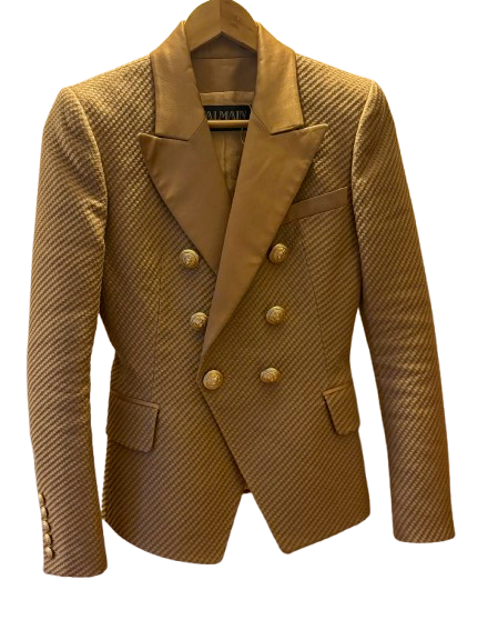 Balmain double breasted fitter blazer with gold buttons. Structured with shoulder pads and lined.