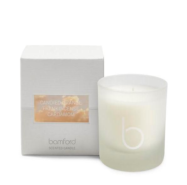 The Bamford Candied Orange Scented Candle is beautifully packaged with an image of the sky that inspired the fragrance hidden inside. The intense notes of cardamon and frankincense balance sweet candied orange, jasmine, and eastern patchouli.
