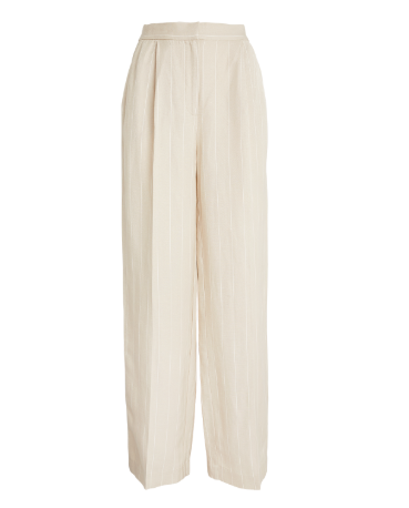 Lyocell/linen blend straight leg trouser in a soft French oak stripe, featuring side seam pockets and back welt pockets. Barbour ID bar to back neck.