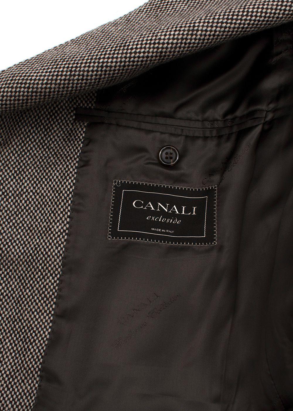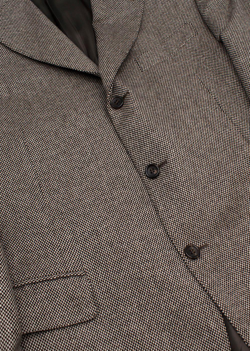 - Cashmere micro-basketweave in black and beige, presenting as grey