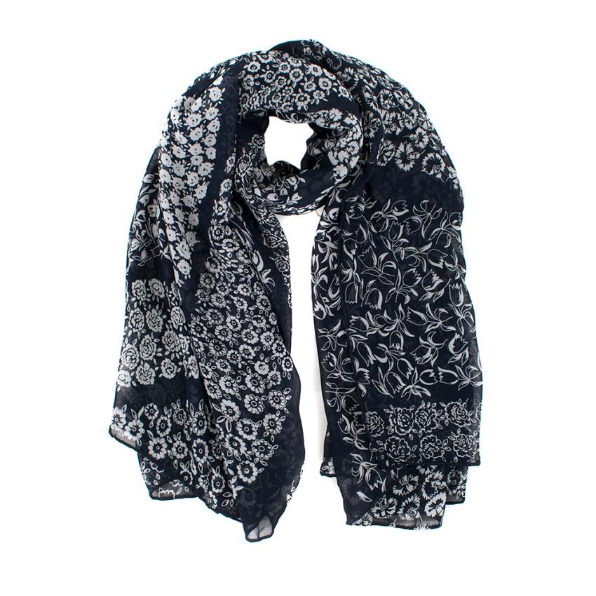 Bespoke Navy Floral Patter Shawl