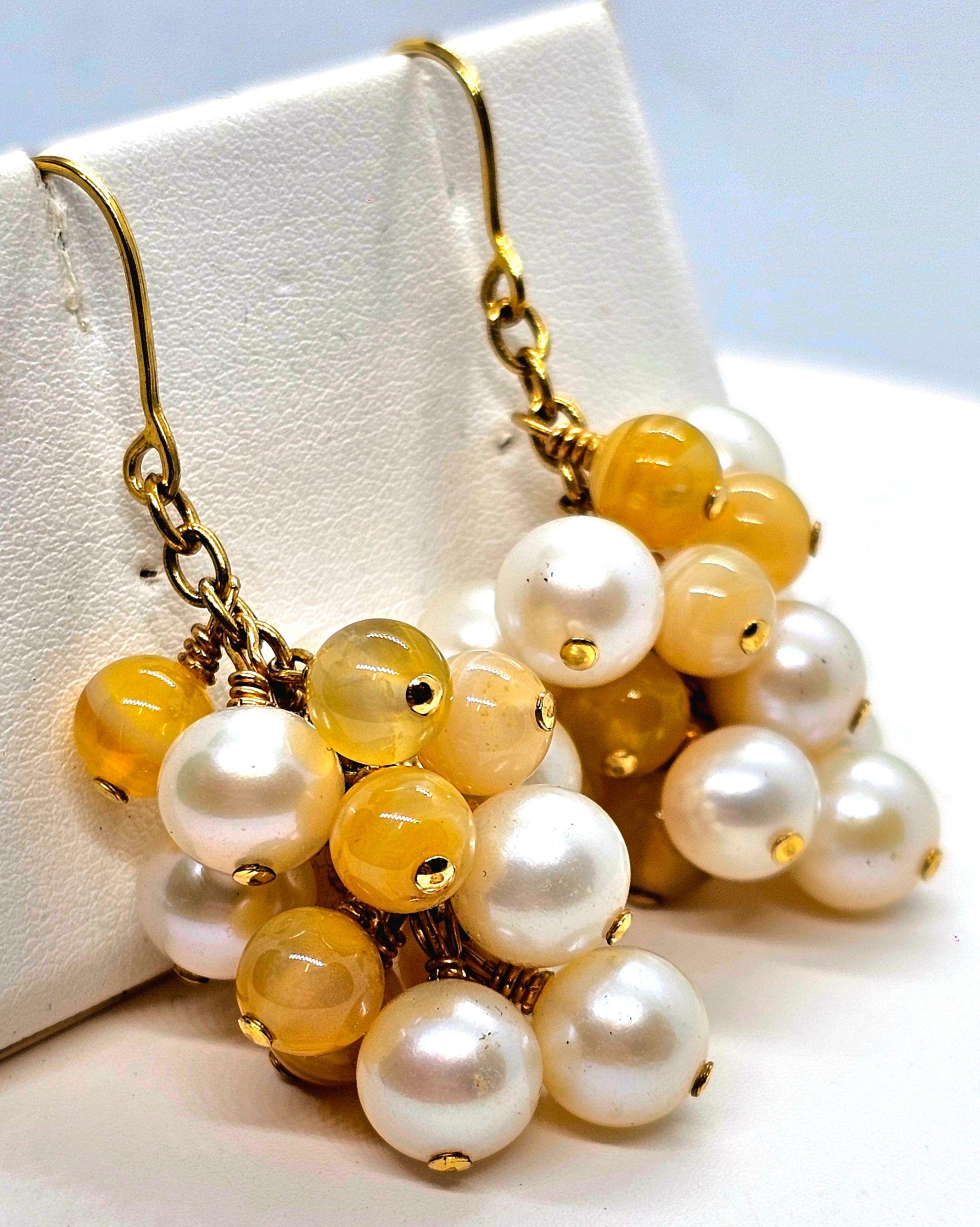 Bespoke Pearl And Calcite Grape Style Drop Earrings