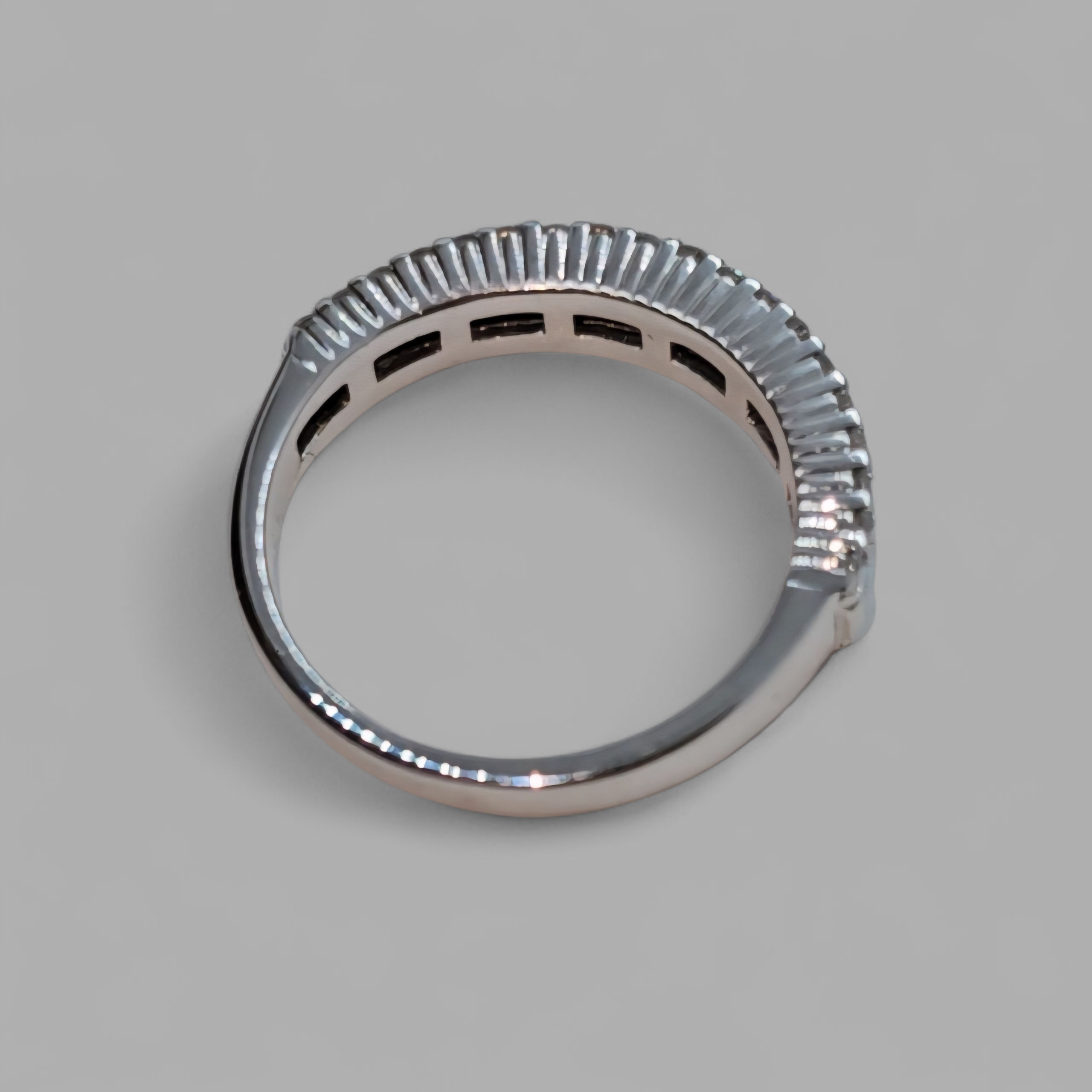 A Baguette and Round diamond eternity ring set into 18ct white gold.