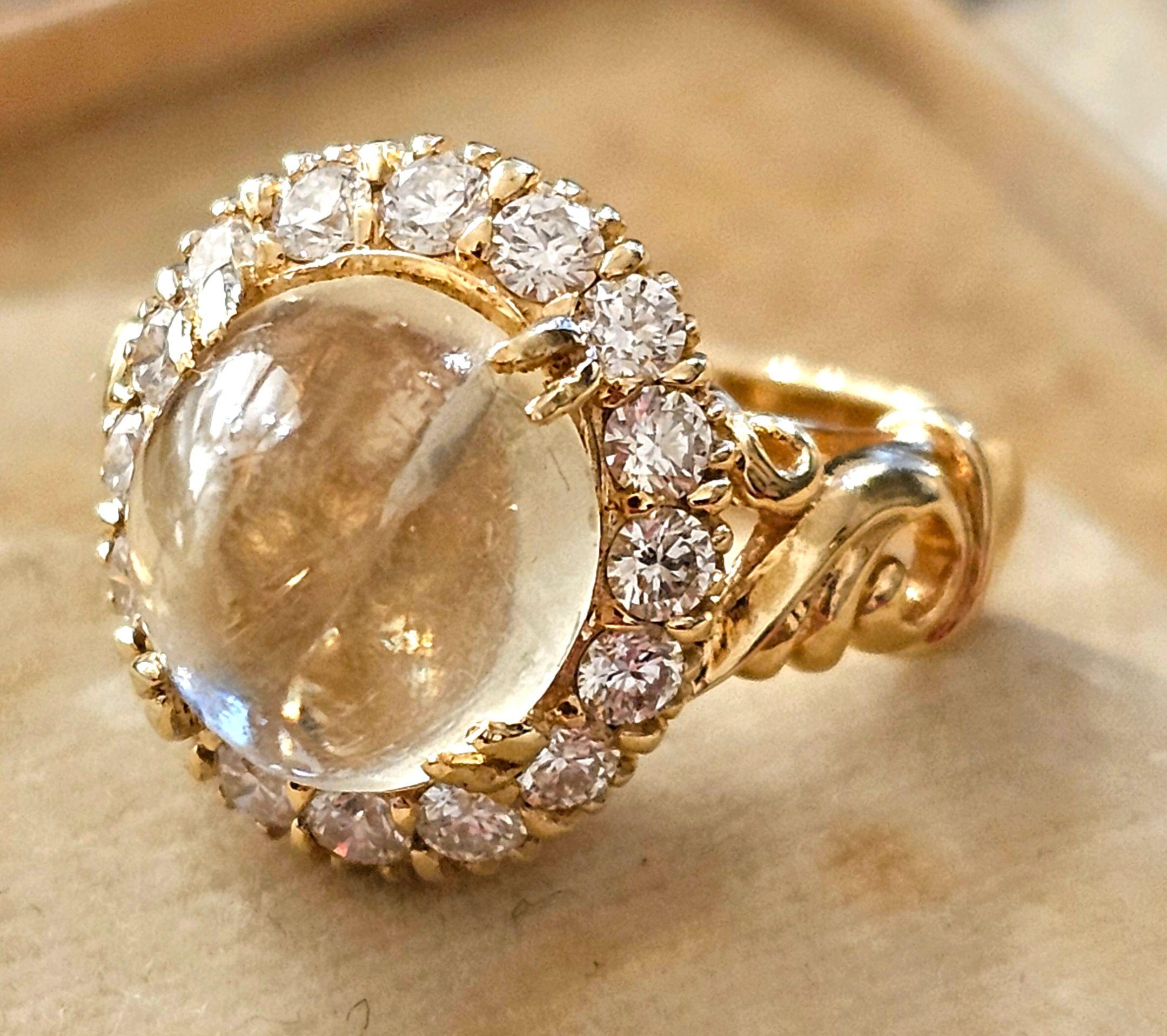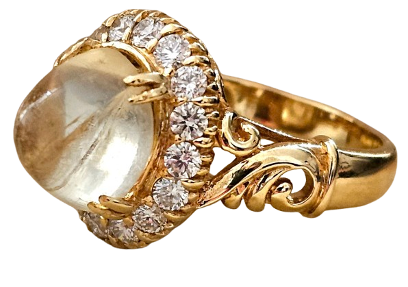 A fabulous vintage natural Quartz and Diamond cluster ring crafted in 18ct yellow gold.