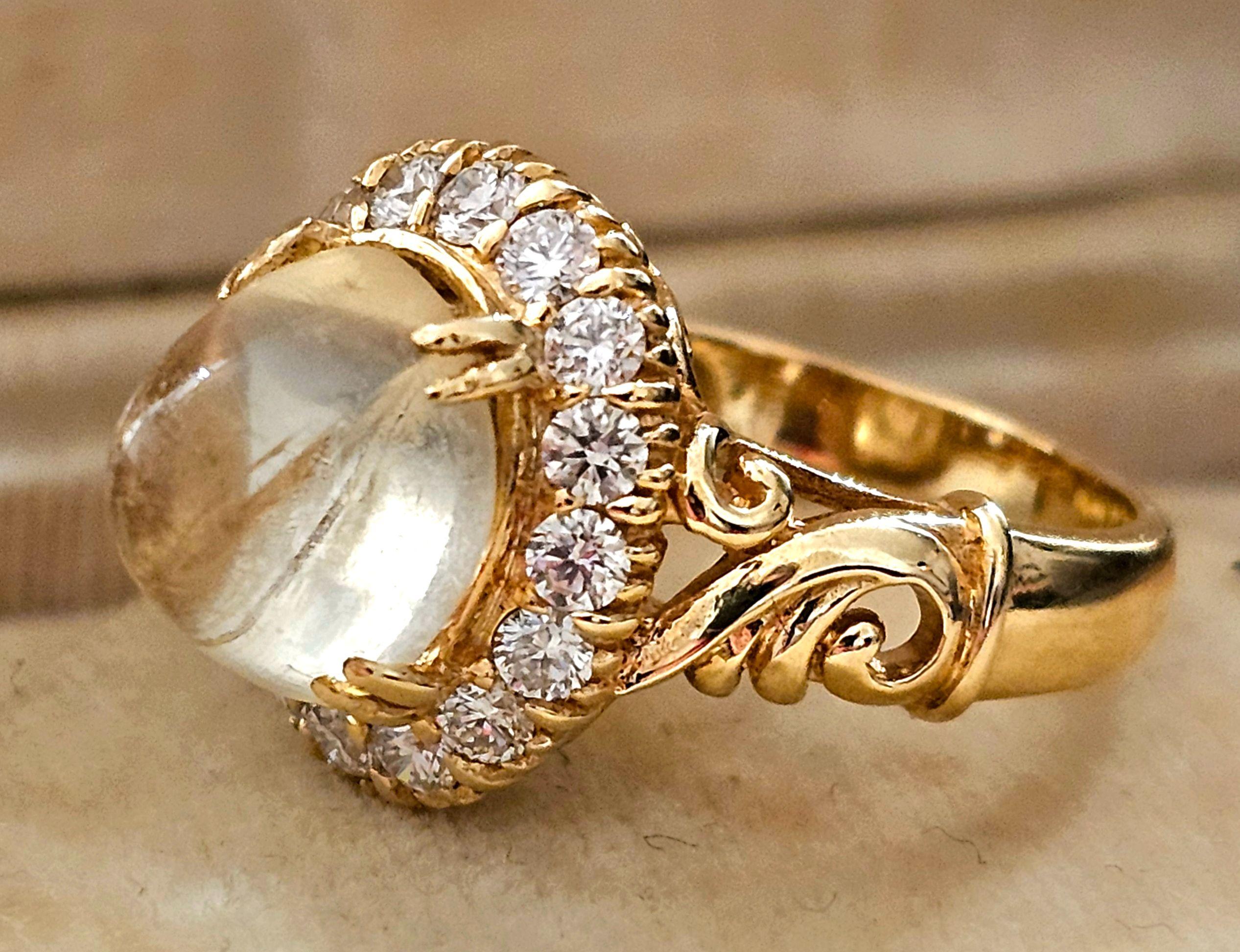 The inside is stamped 750 for gold purity and there is an indistinct French Poincon hallmark on the outside of the band.