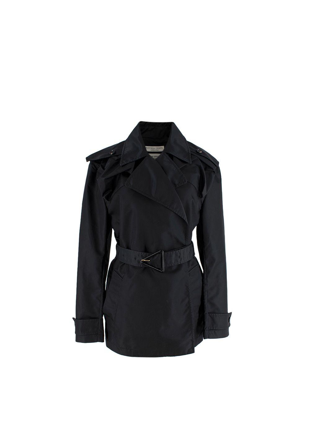 Bottega Veneta black gabardine short trench coat