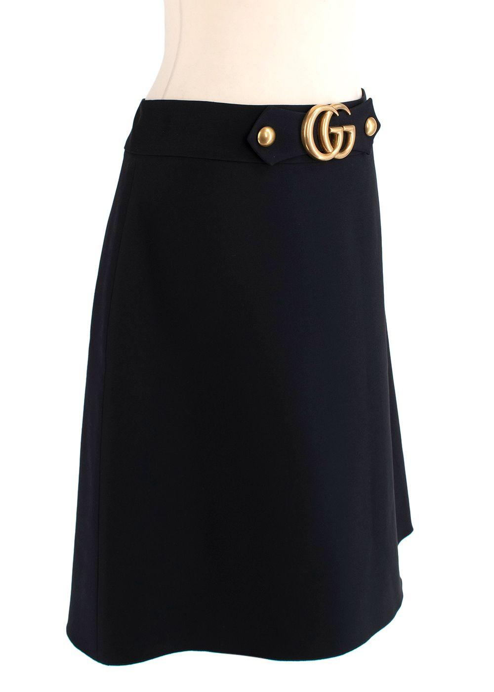 Gucci Black GG Gold Tone Logo A Line Skirt