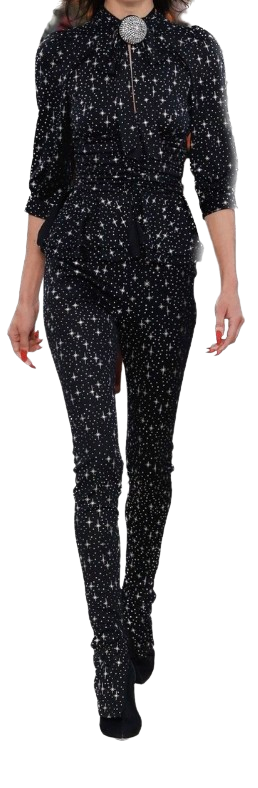 Balenciaga Runway Black Spandex Sparkle Print Top & Pants