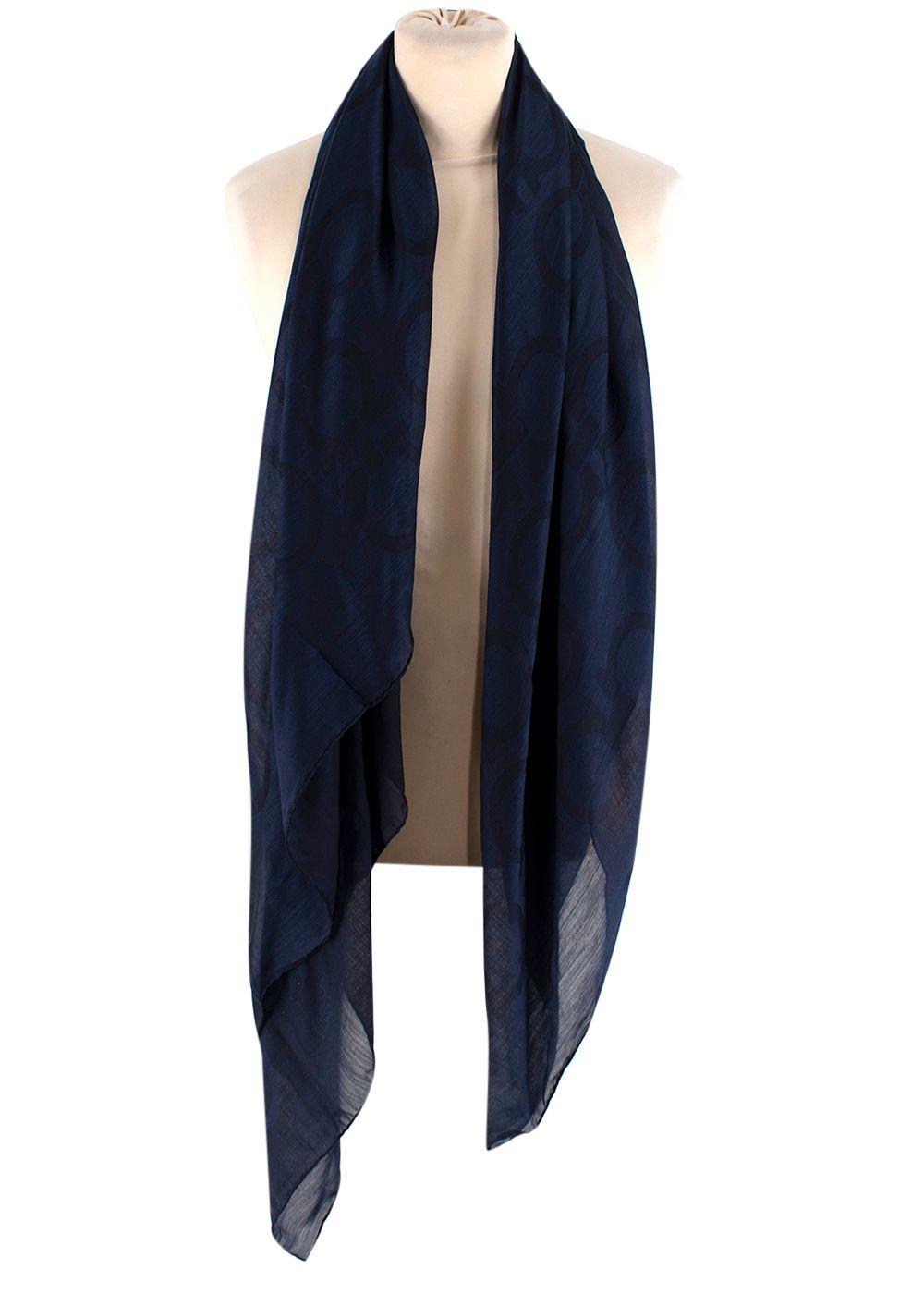 Salvatore Ferragamo Blue Gancini Print Scarf