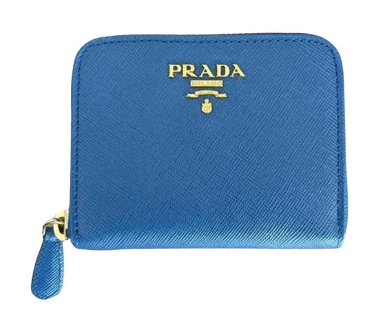 Small blue saffiano leather purse comes with box. Used but in good condition