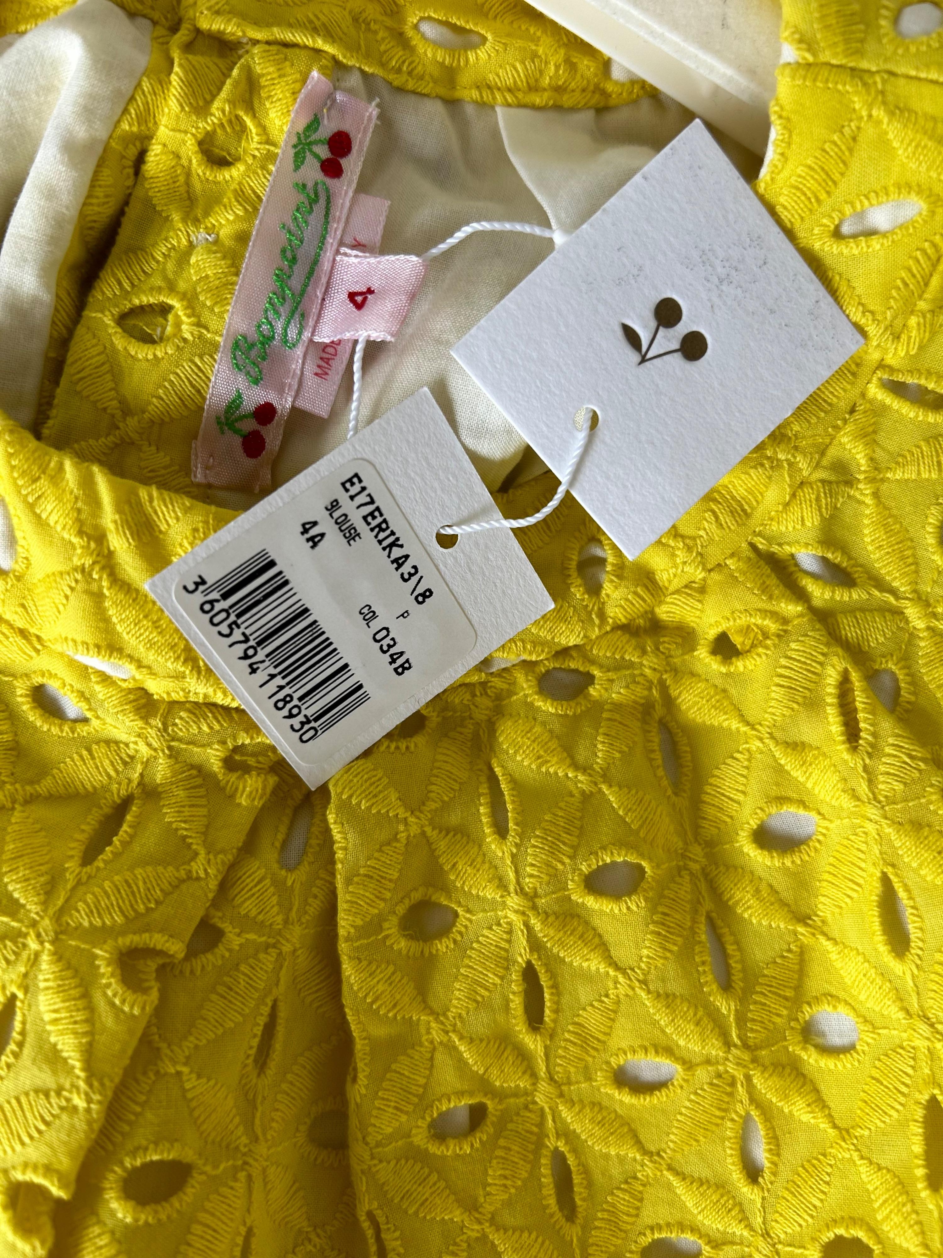 Bonpoint Ivory and Gold Cherry Print Frill Blouse