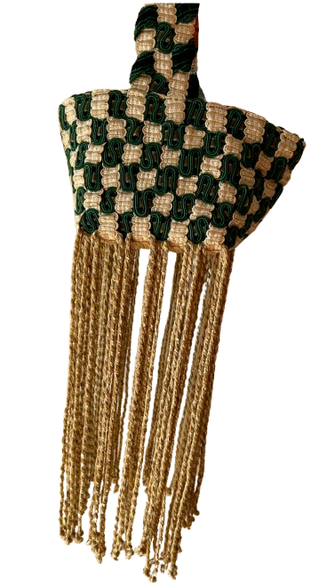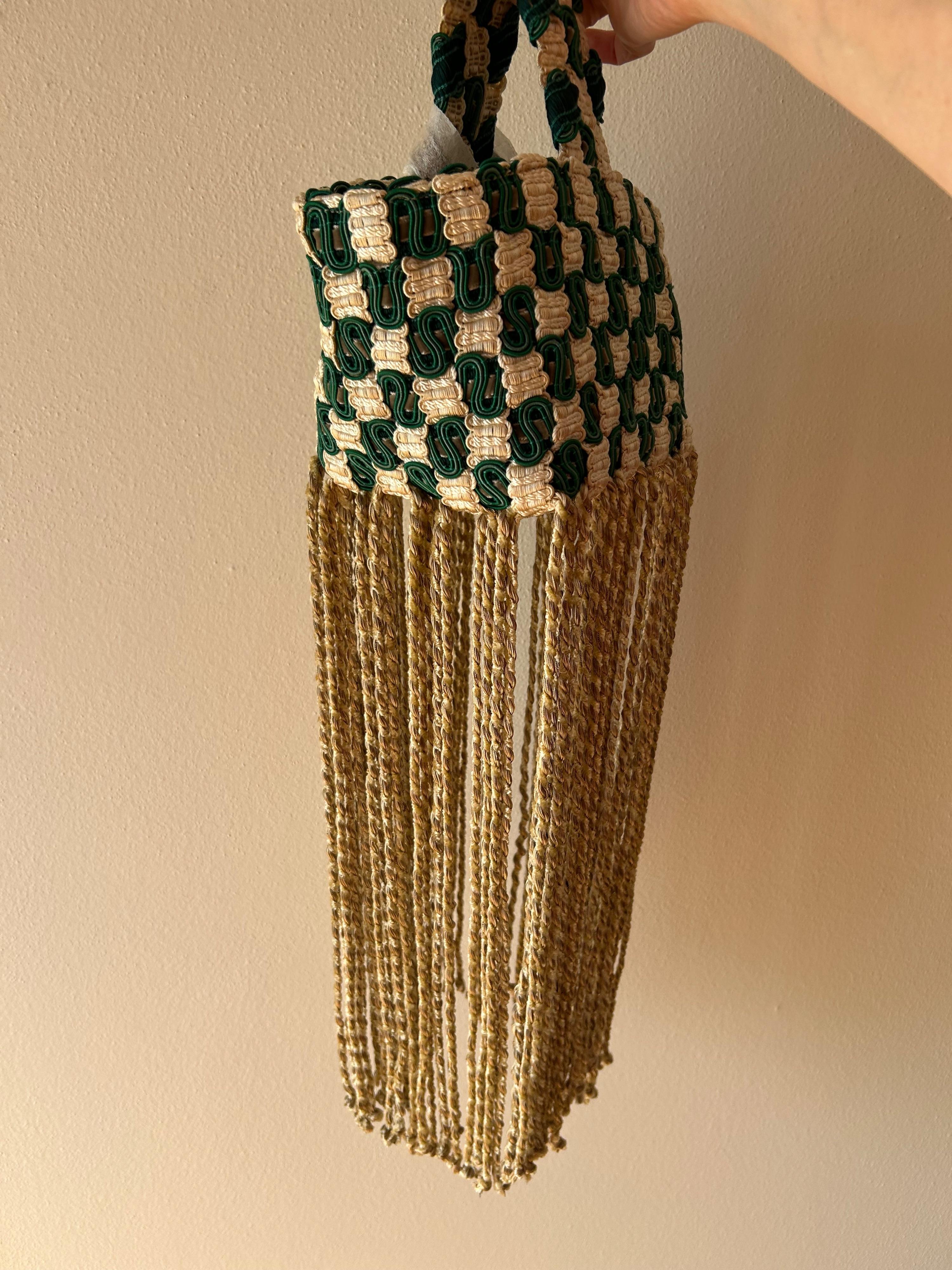 small hand bag in woven trimmings.
