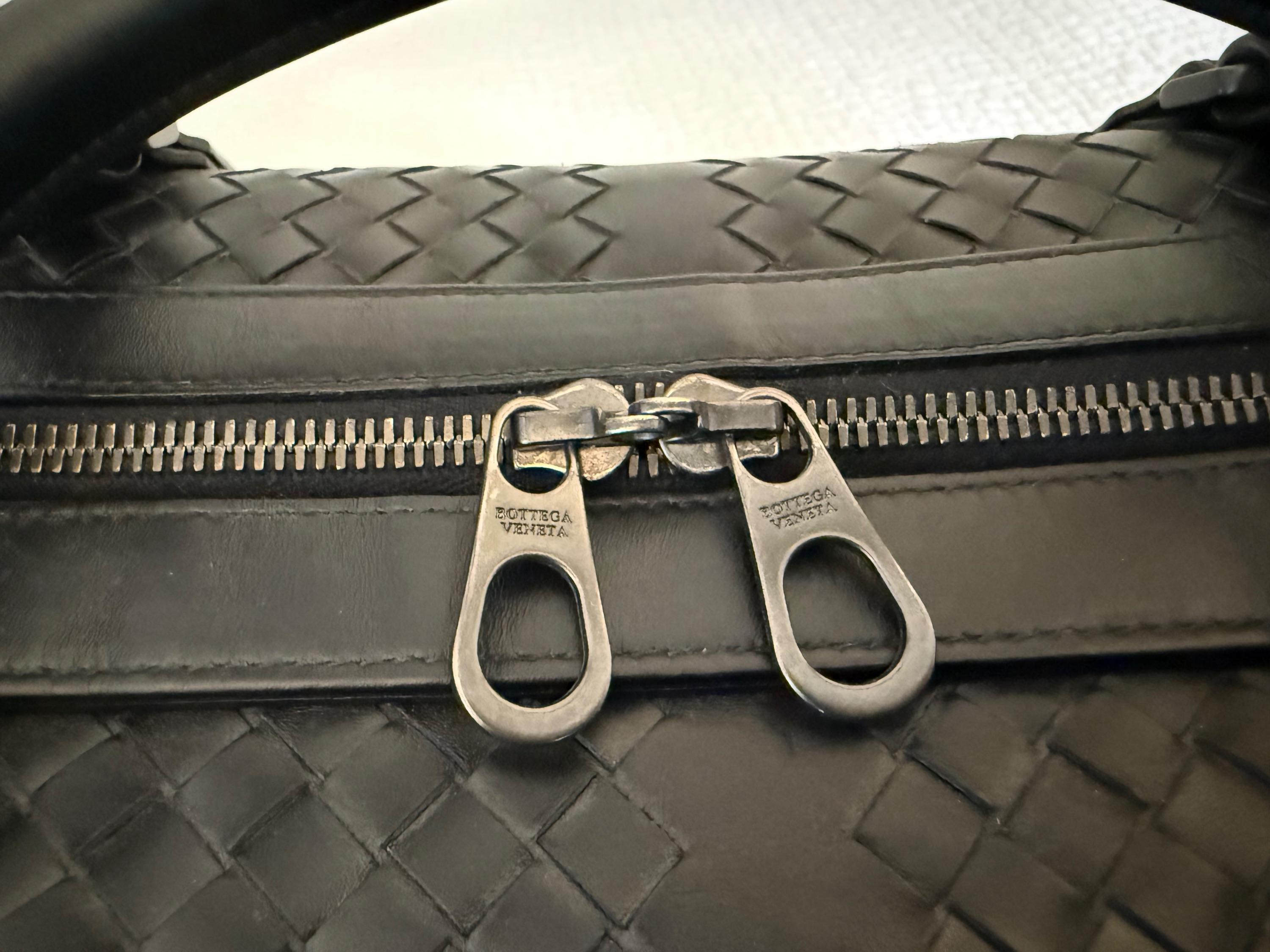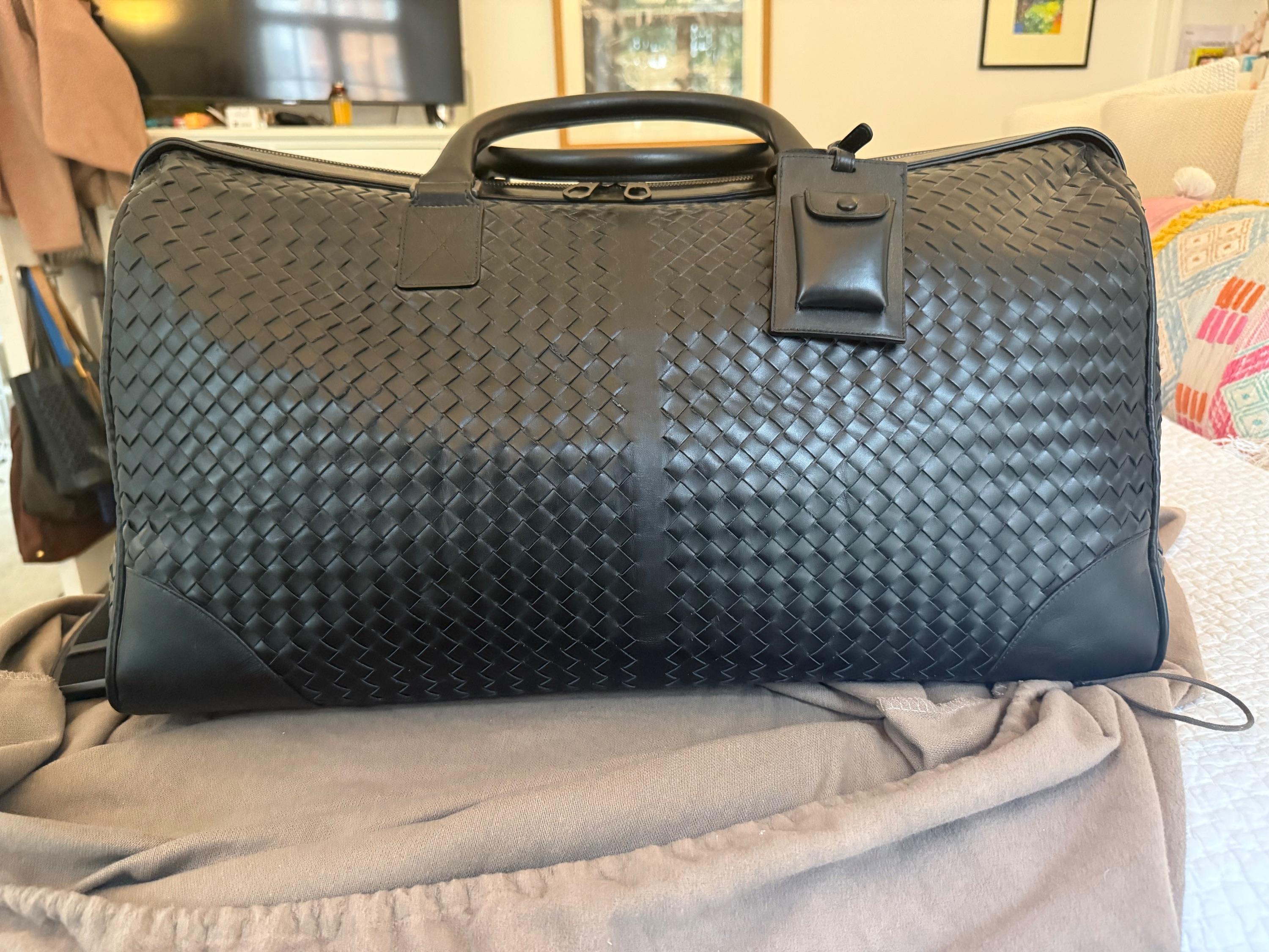 Bottega Veneta Black Intrecciato Leather Duffle Bag