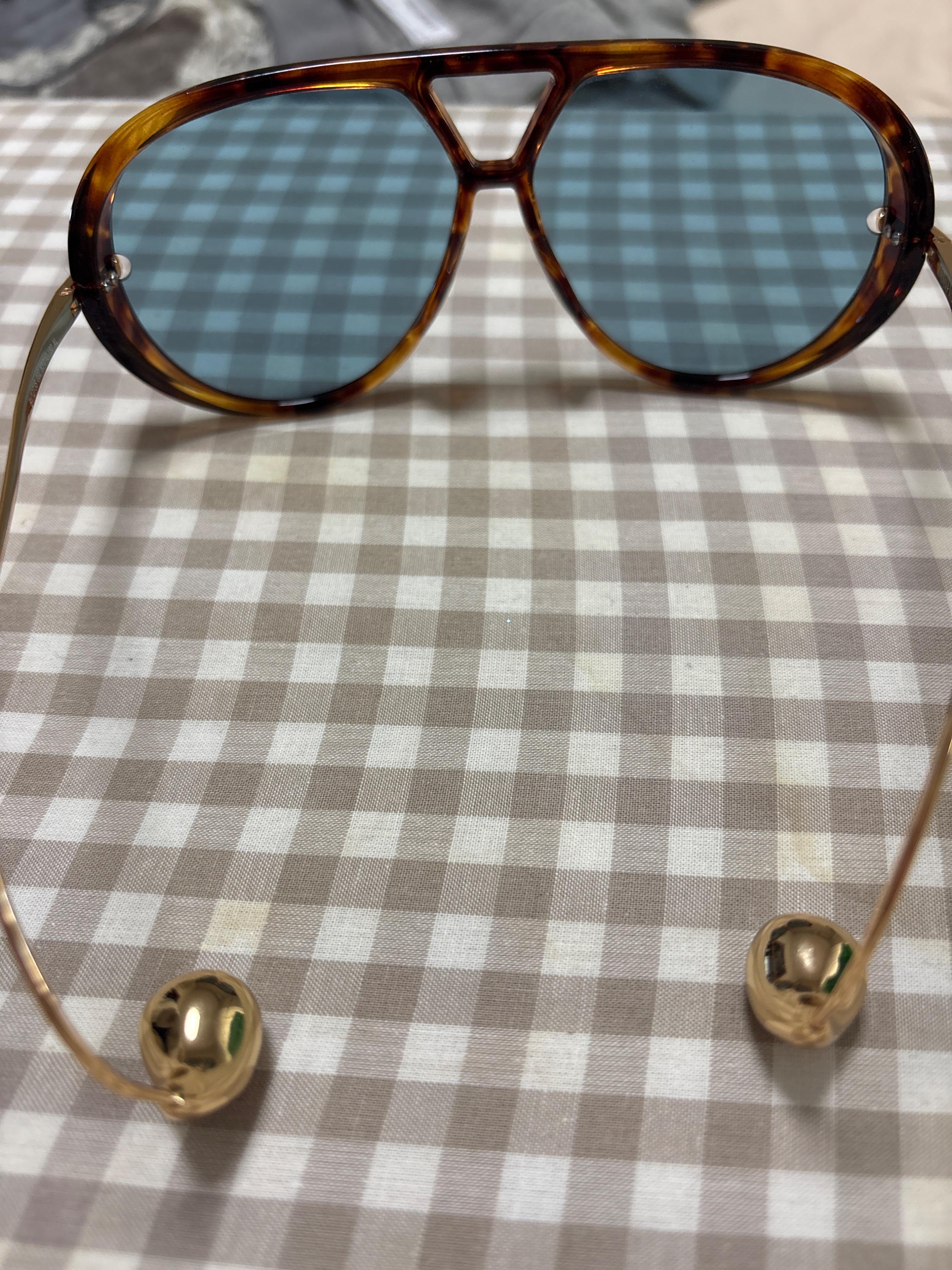 All the original packaging as seen. Never worn with no any damages. Beautiful blue shade of frames.Gold details.