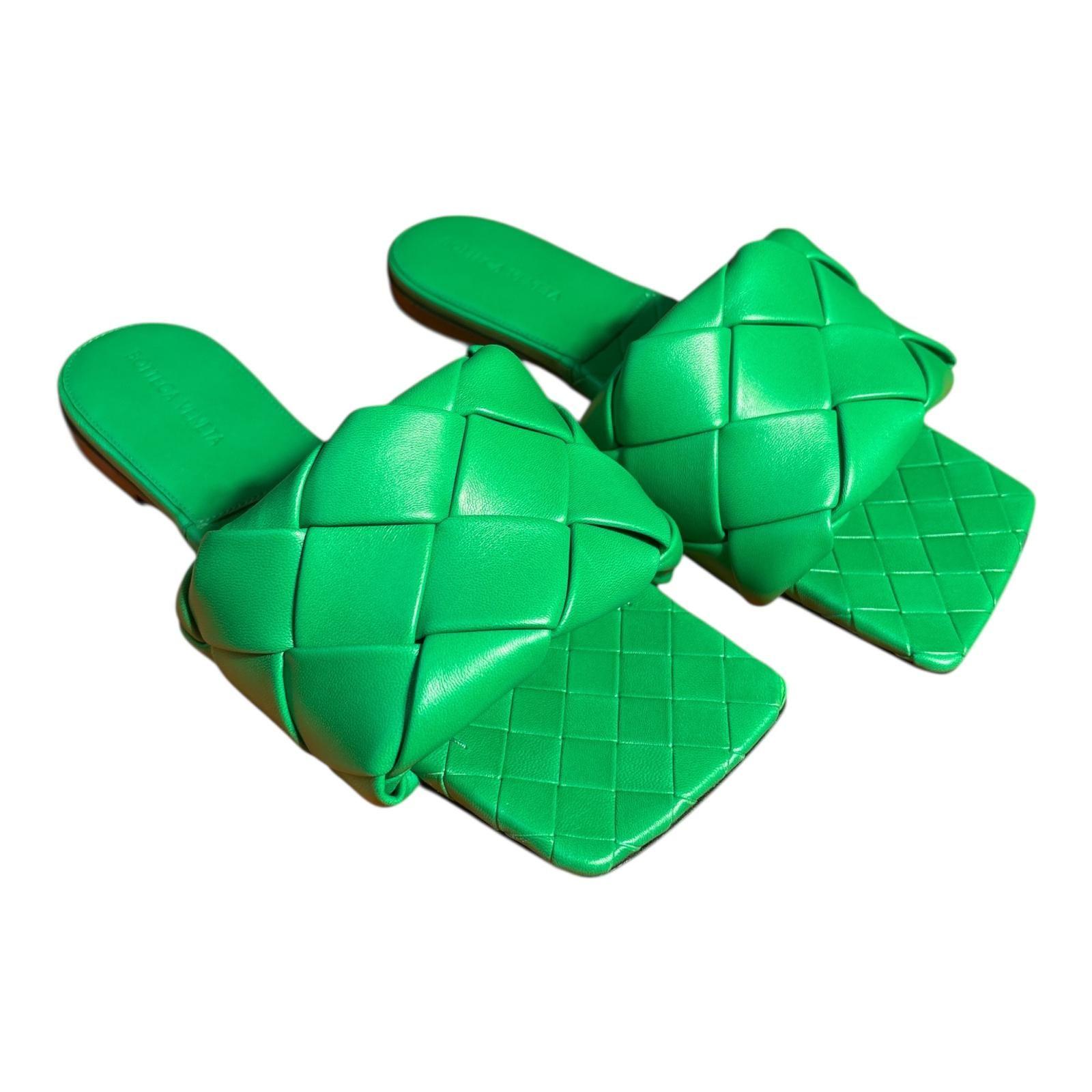 Bottega Veneta Green Leather Slides