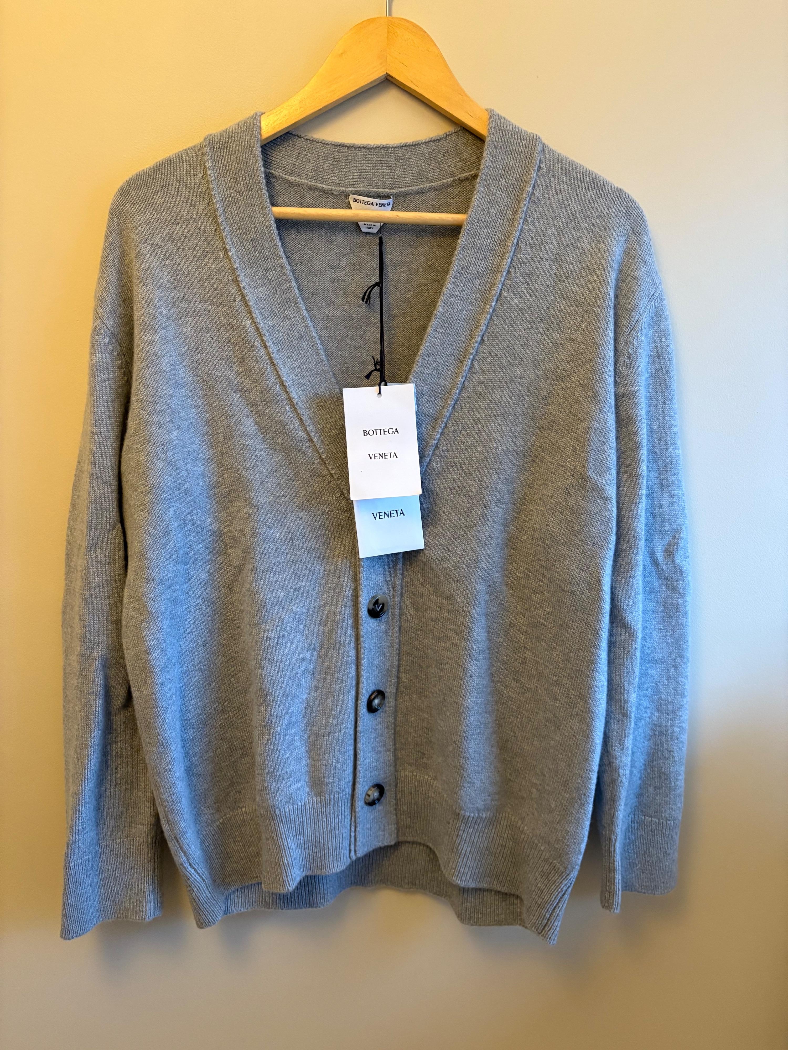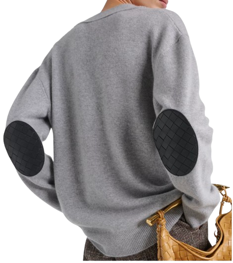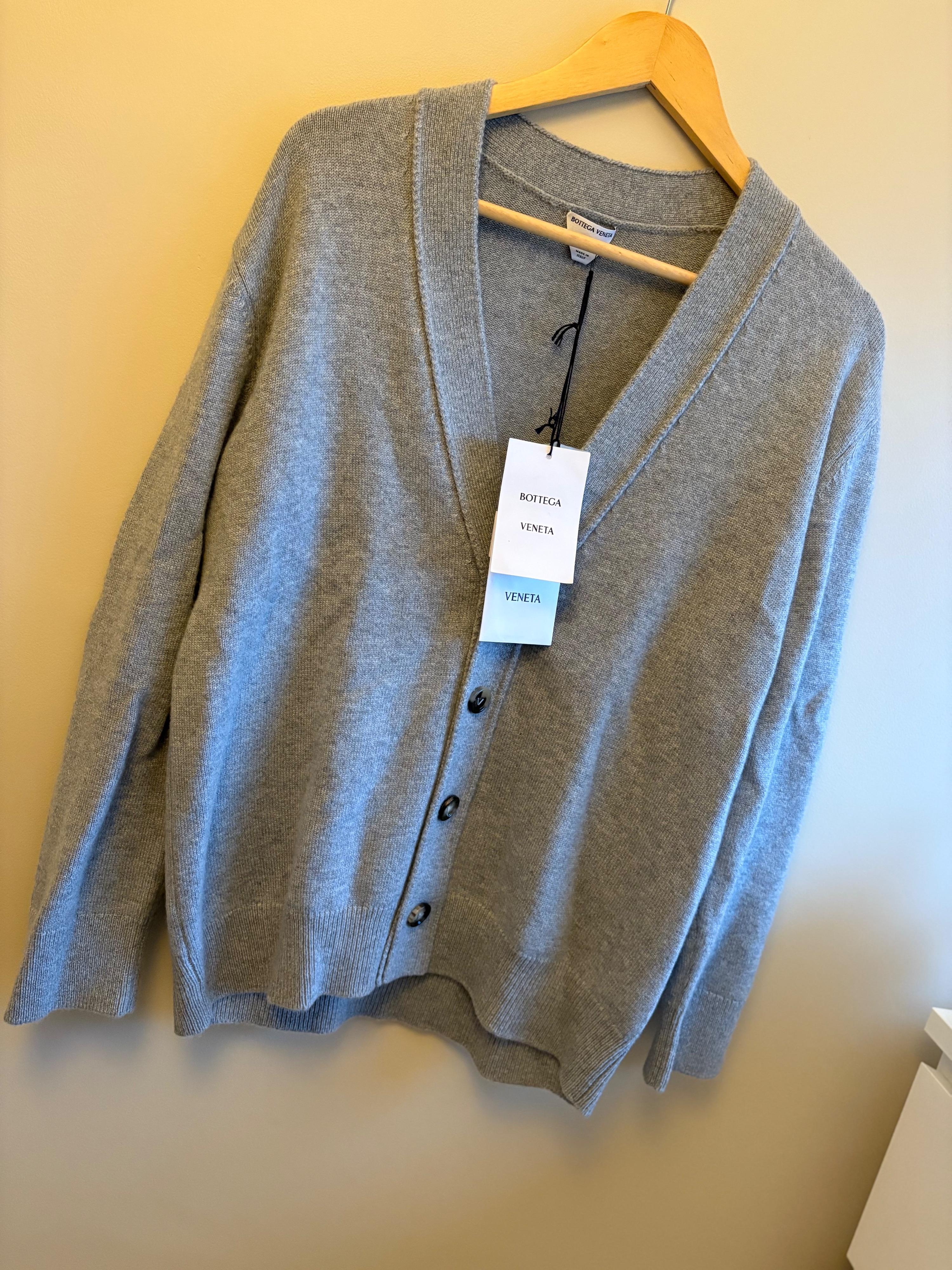 Bottega Veneta Grey Cashmere Cardiagn with Leather Elbow Patches