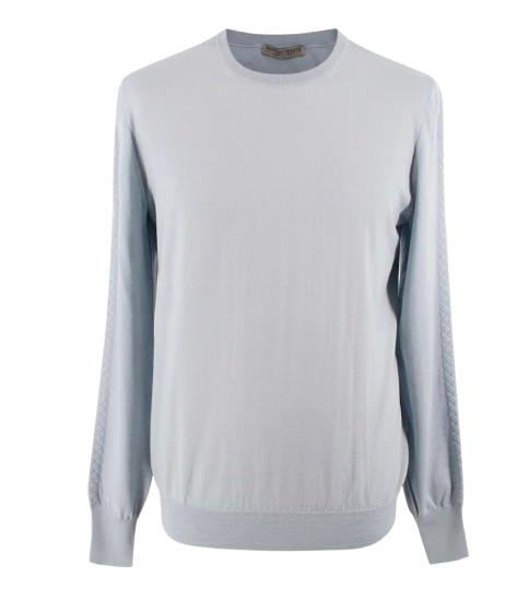 Bottega Veneta Light Blue Fine Knit Jumper with Intrecciato Sleeve Detail