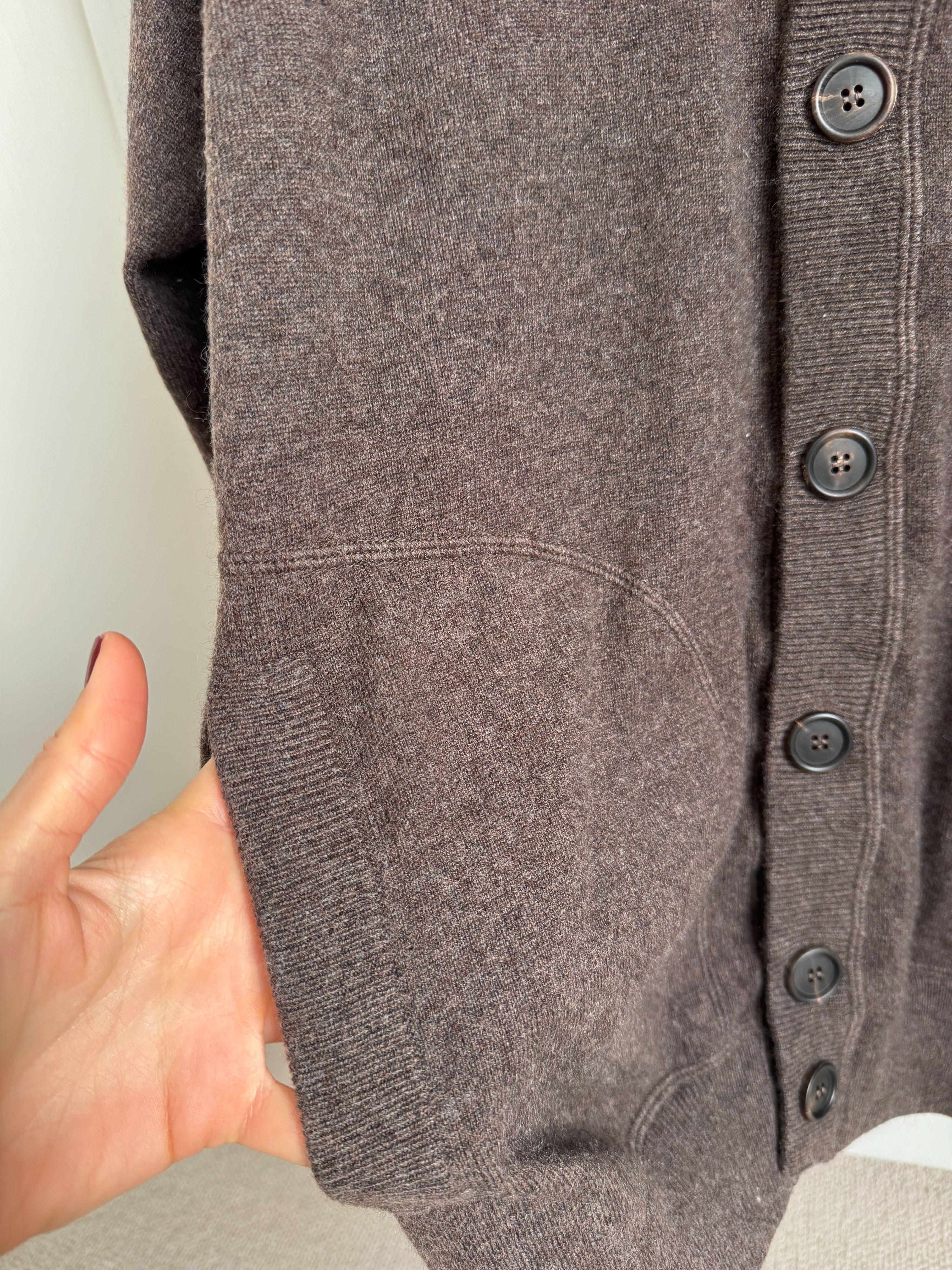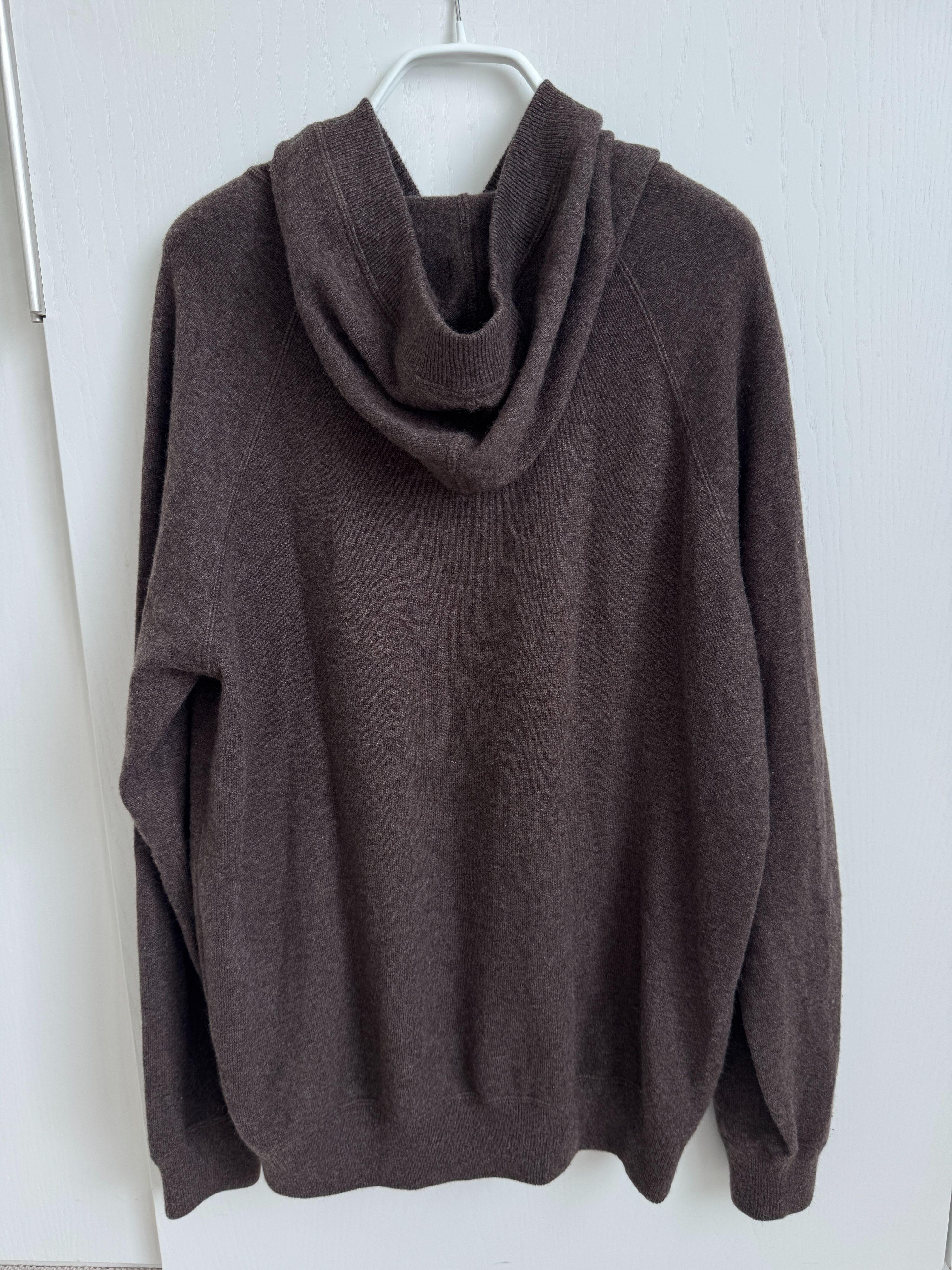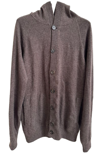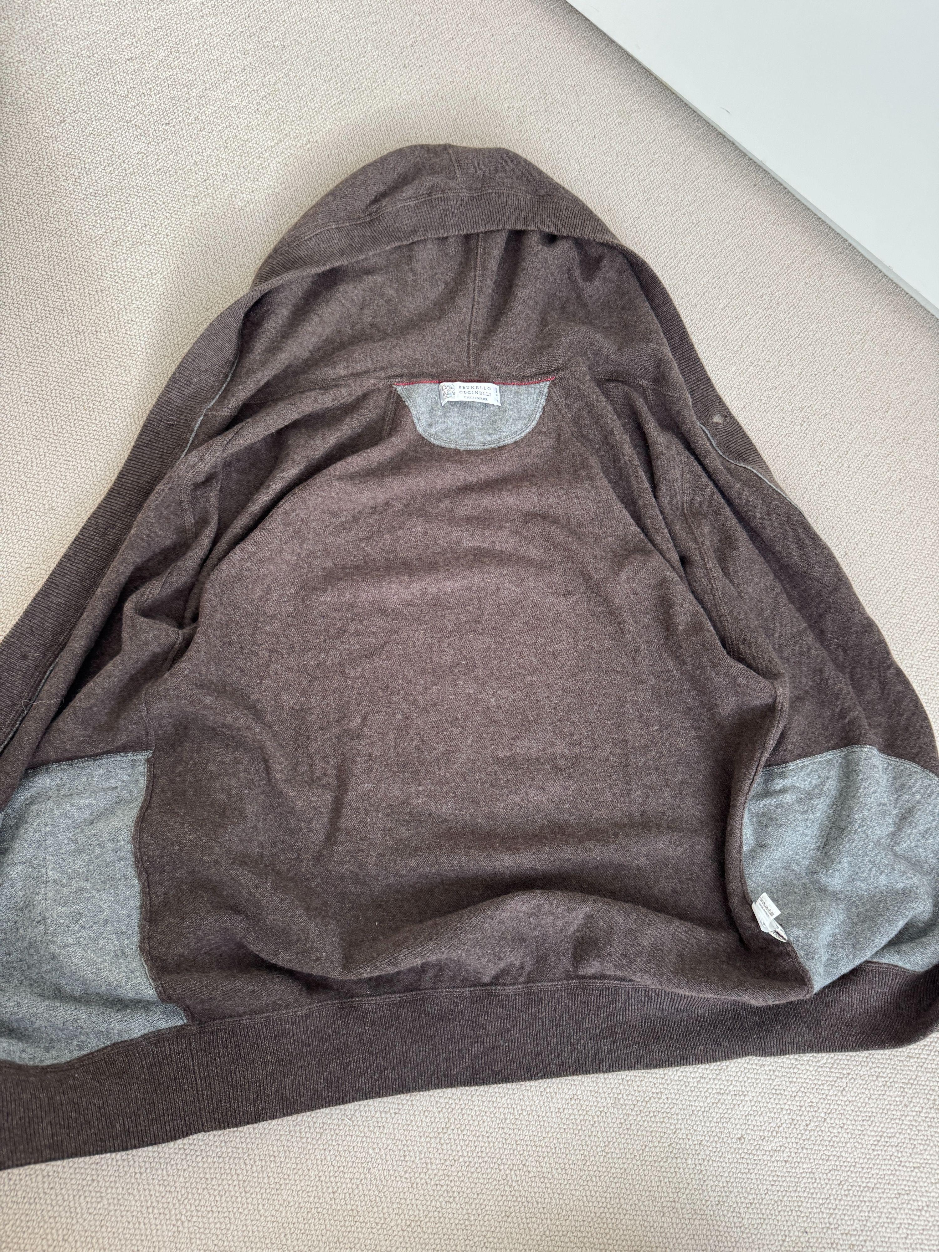 Brunello Cucinelli 100% cashmere sweater cardigan with a hood.