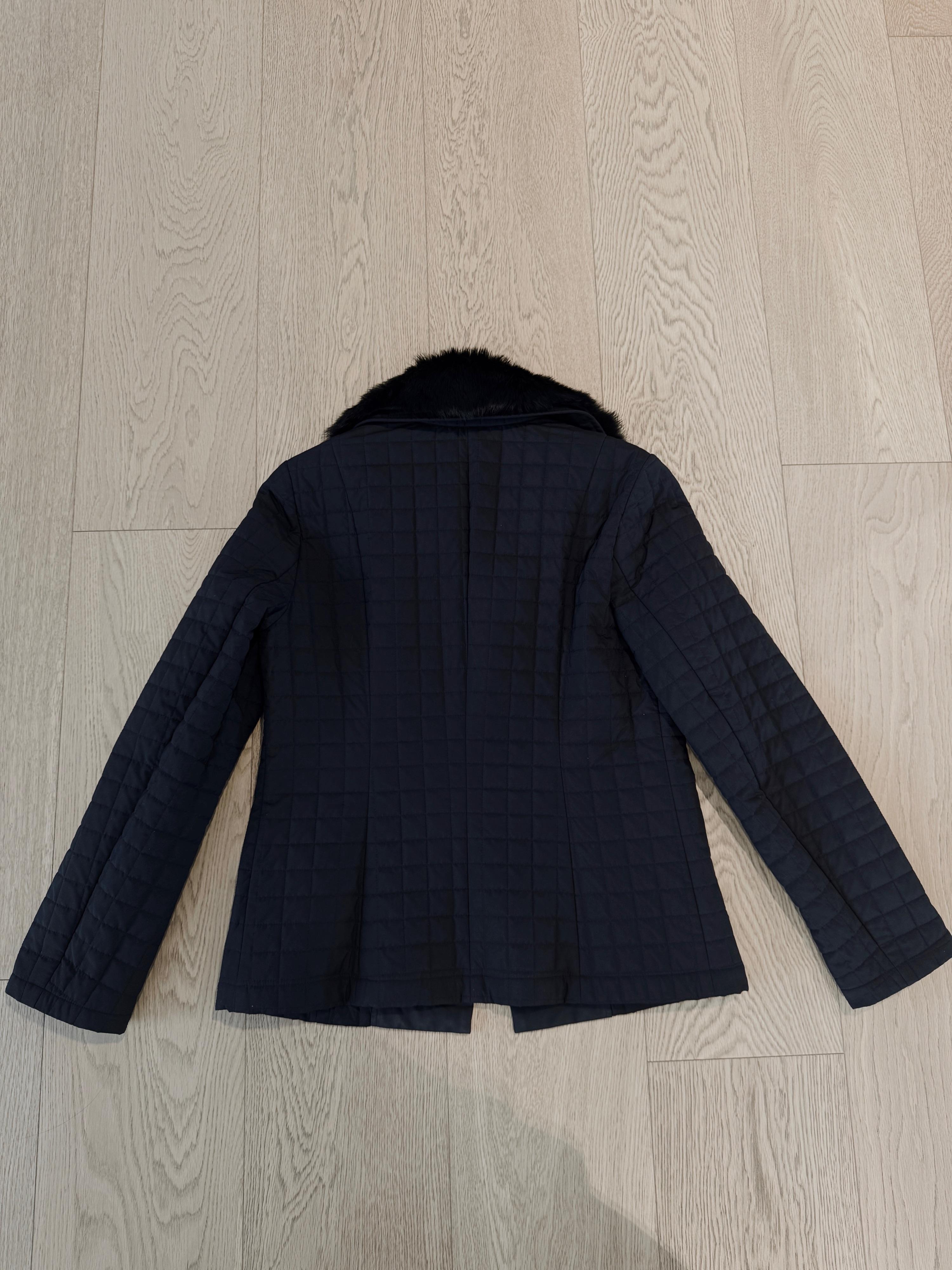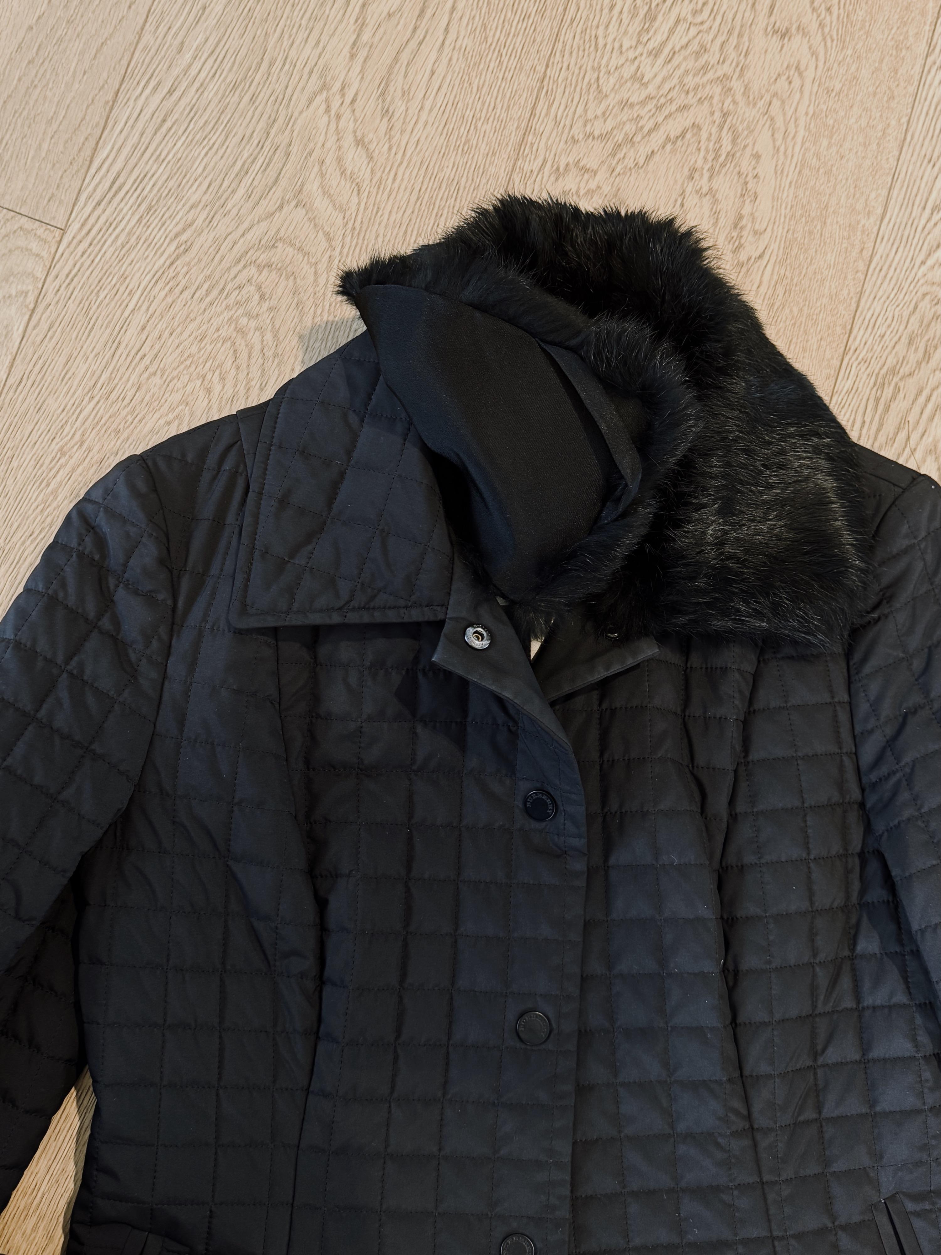 Burberry Quilted Jacket with Detachable Rabbit Fur Collar.