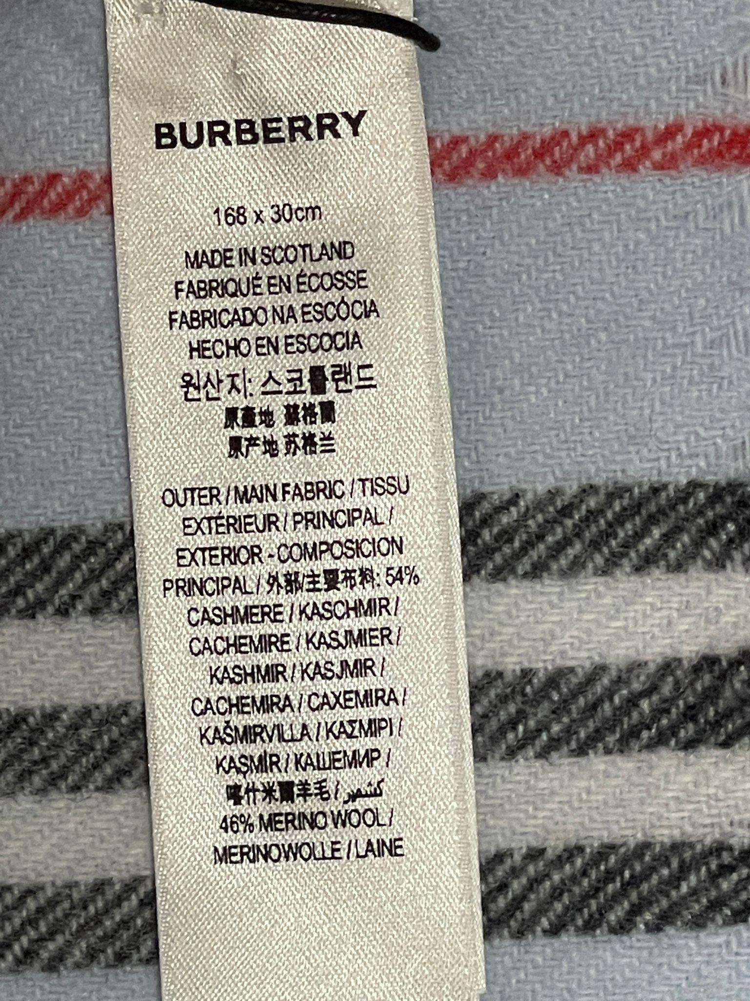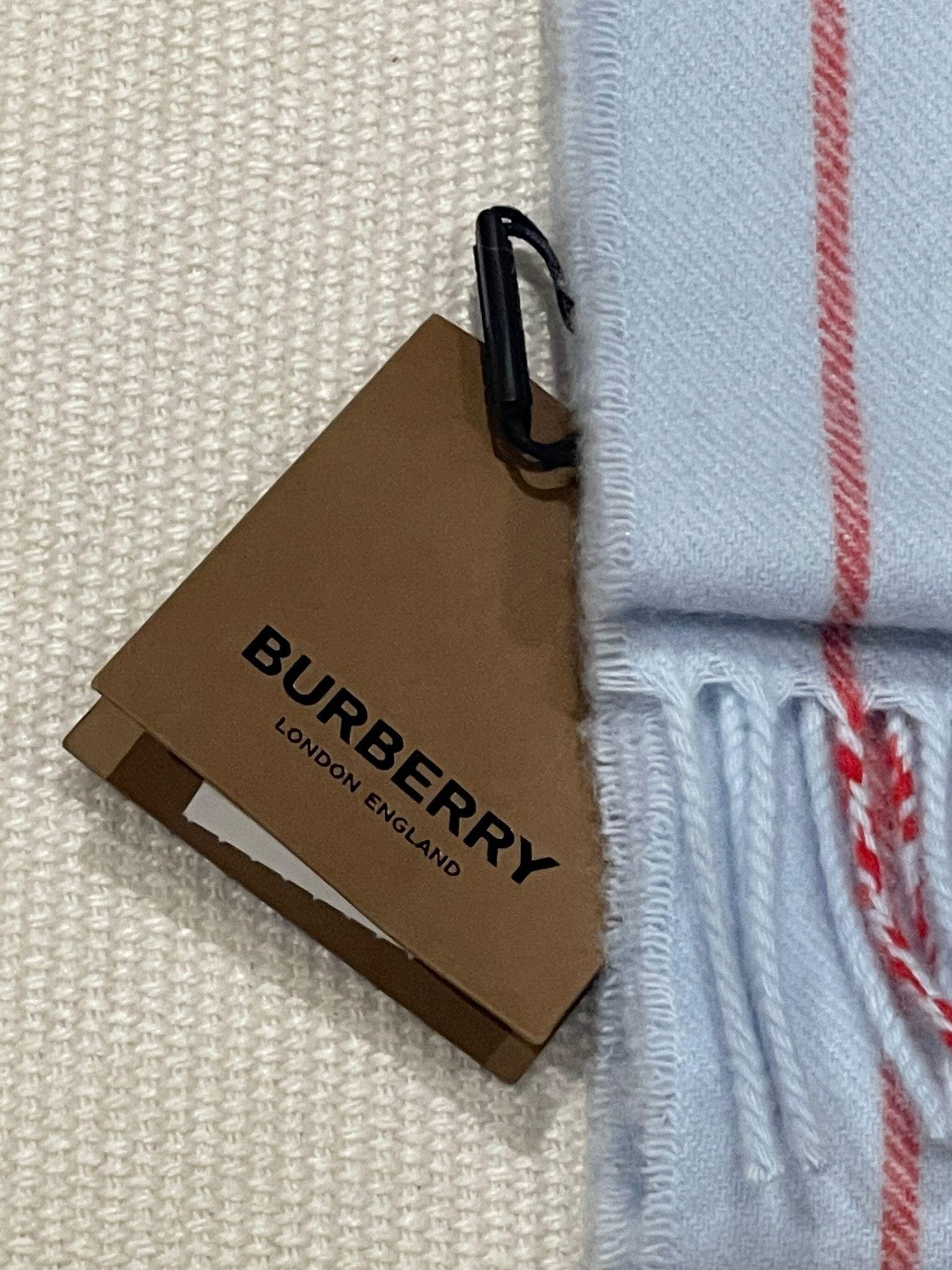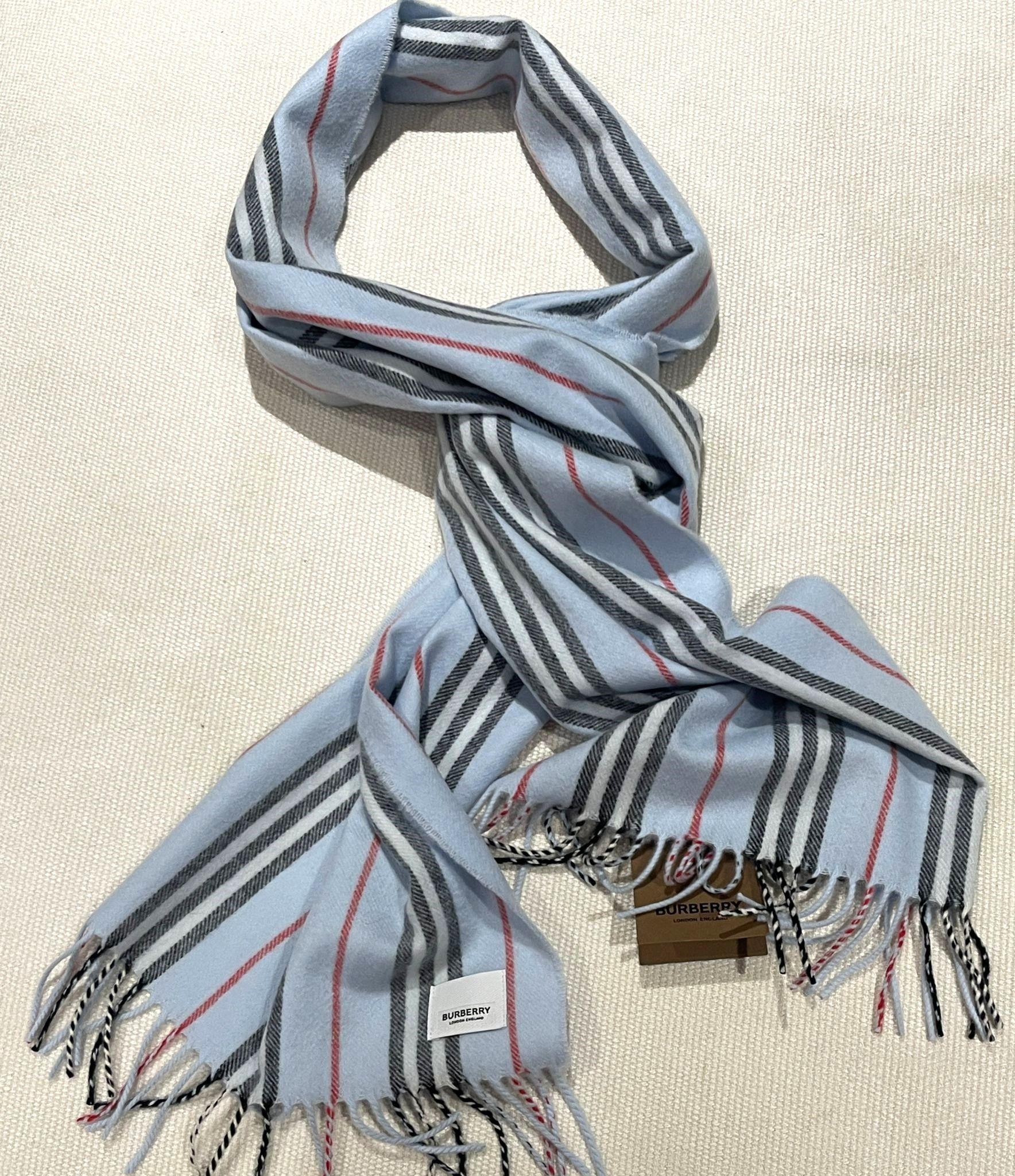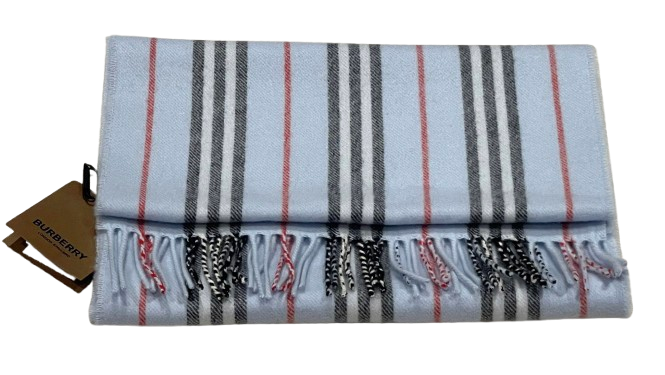 Burberry Blue Cashmere Blend Striped Scarf