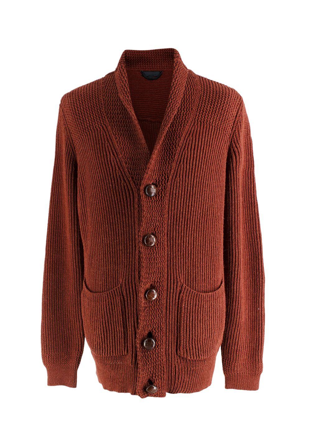 A luxurious Burberry Prorsum heavyweight cardigan crafted in Italy from a premium cotton-alpaca-silk blend. This piece features a chunky rib and seed-stitch knit, a shawl collar, and woven leather-style buttons—signature details of Burberry’s former Prorsum runway line. Designed with two front patch pockets and substantial texture, this cardigan is warm, structured, and elevated. A timeless layering piece with exceptional craftsmanship.