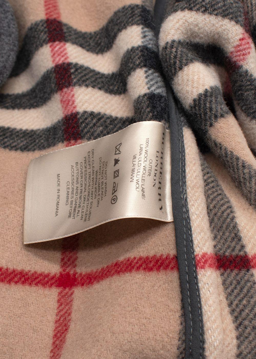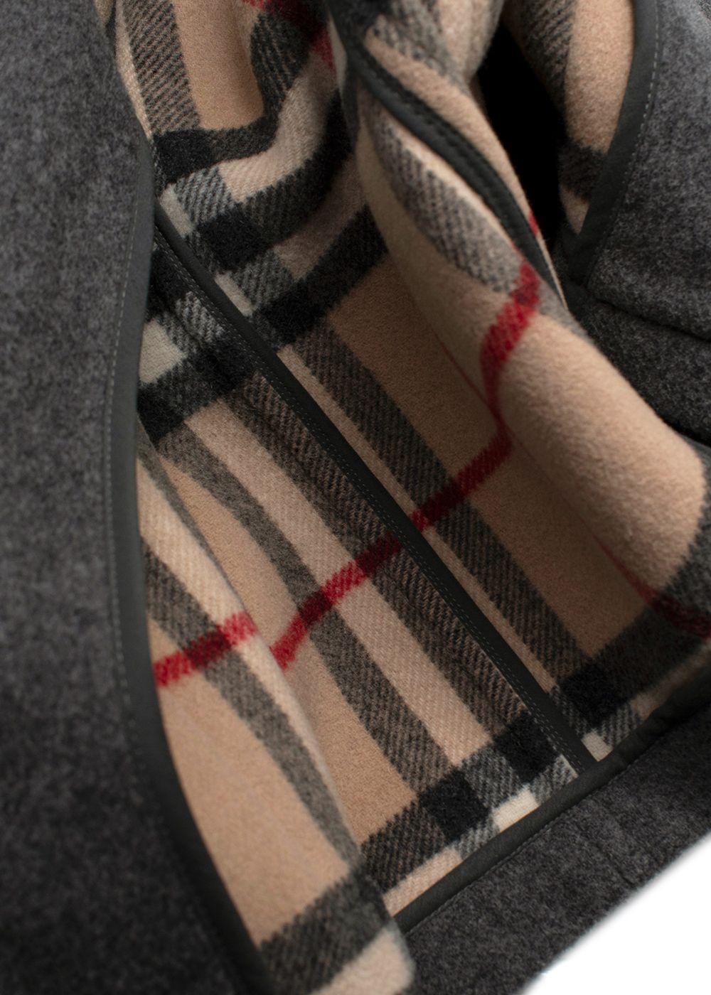 Colour: Charcoal / dark grey exterior with classic Burberry check lining (beige + black/red tartan internal lining).