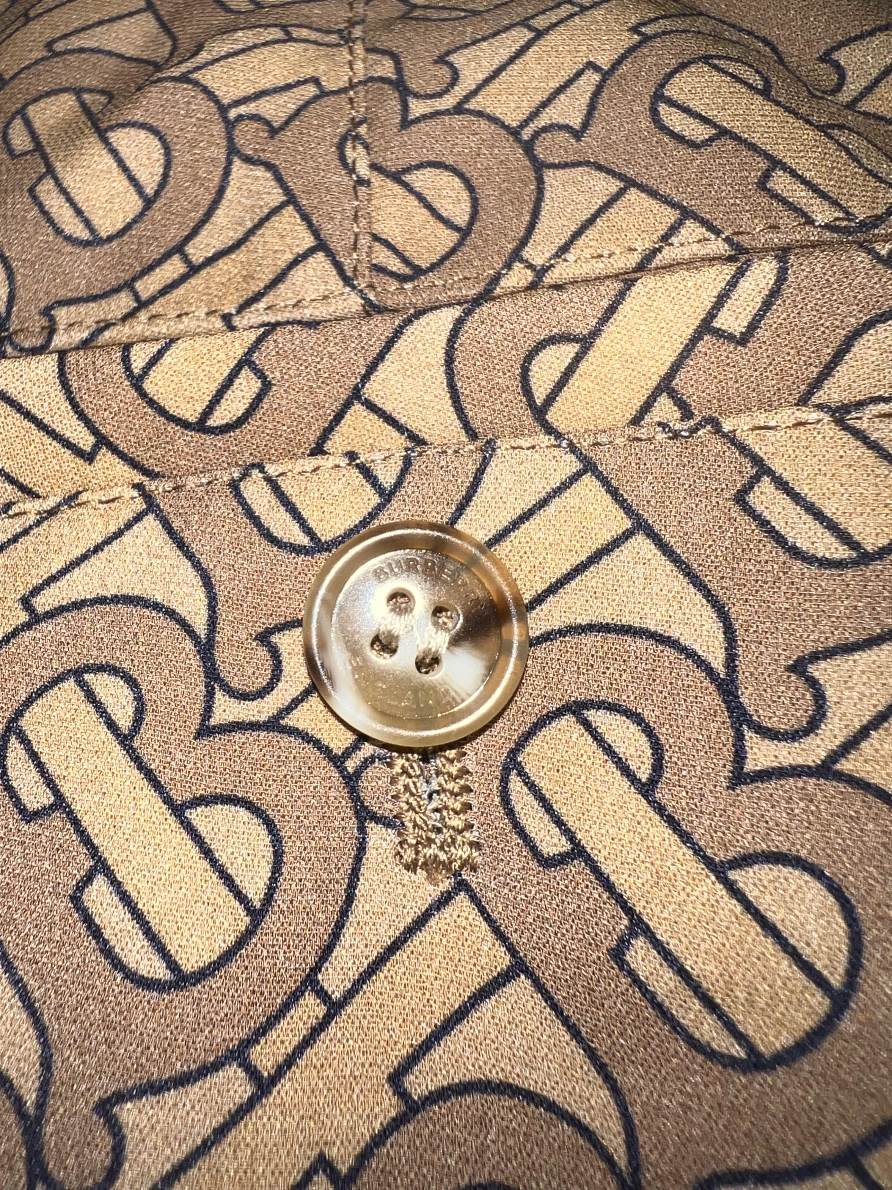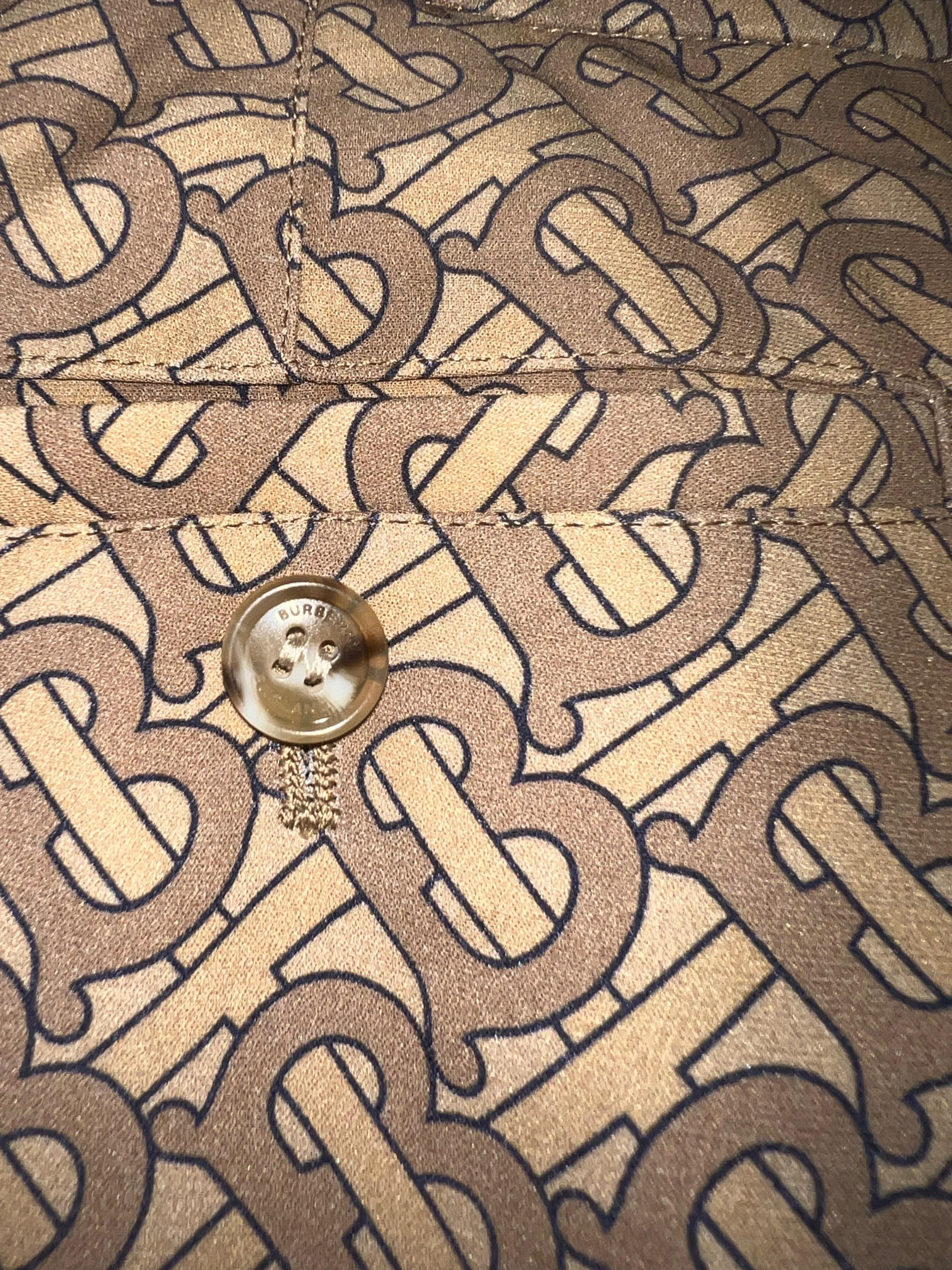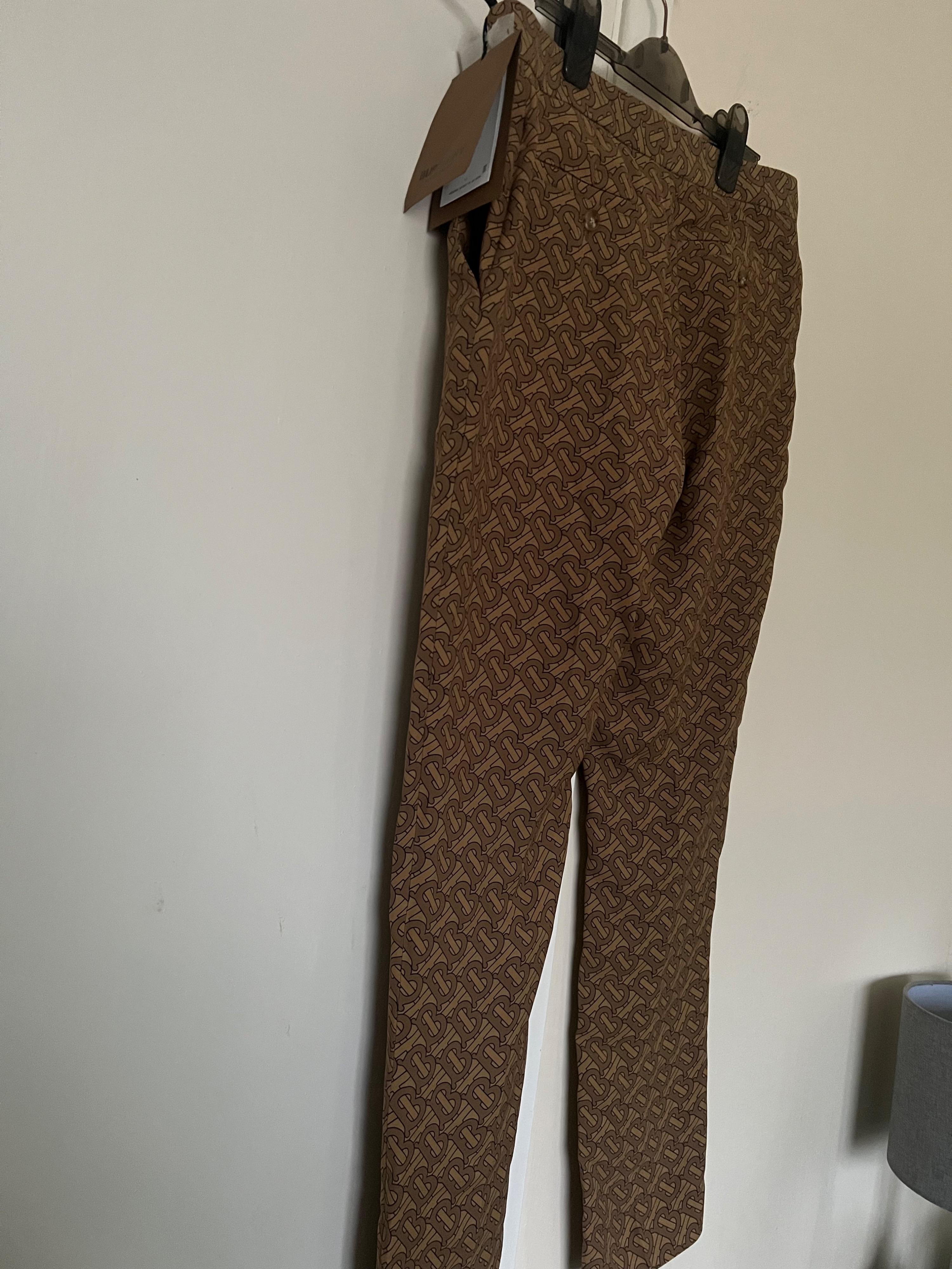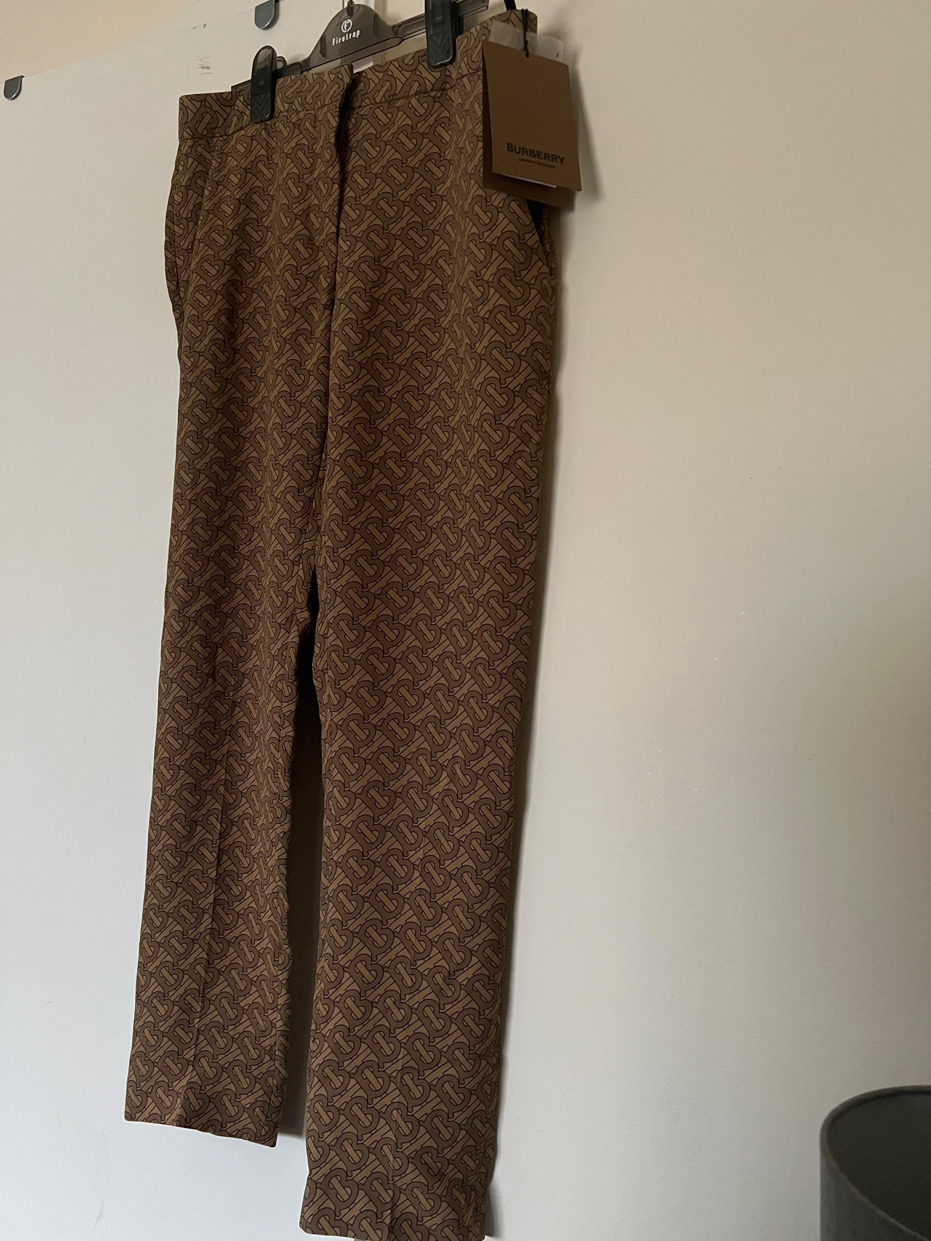 Brand new with tags authentic Burberry Beige Silk Hanover Monogram Print Trousers Size 8UK/40IT RRP £560. Never been worn. Sold as seen. Measurements crotch 76cm, length 100 cm, width 16cm, hips 40cm.