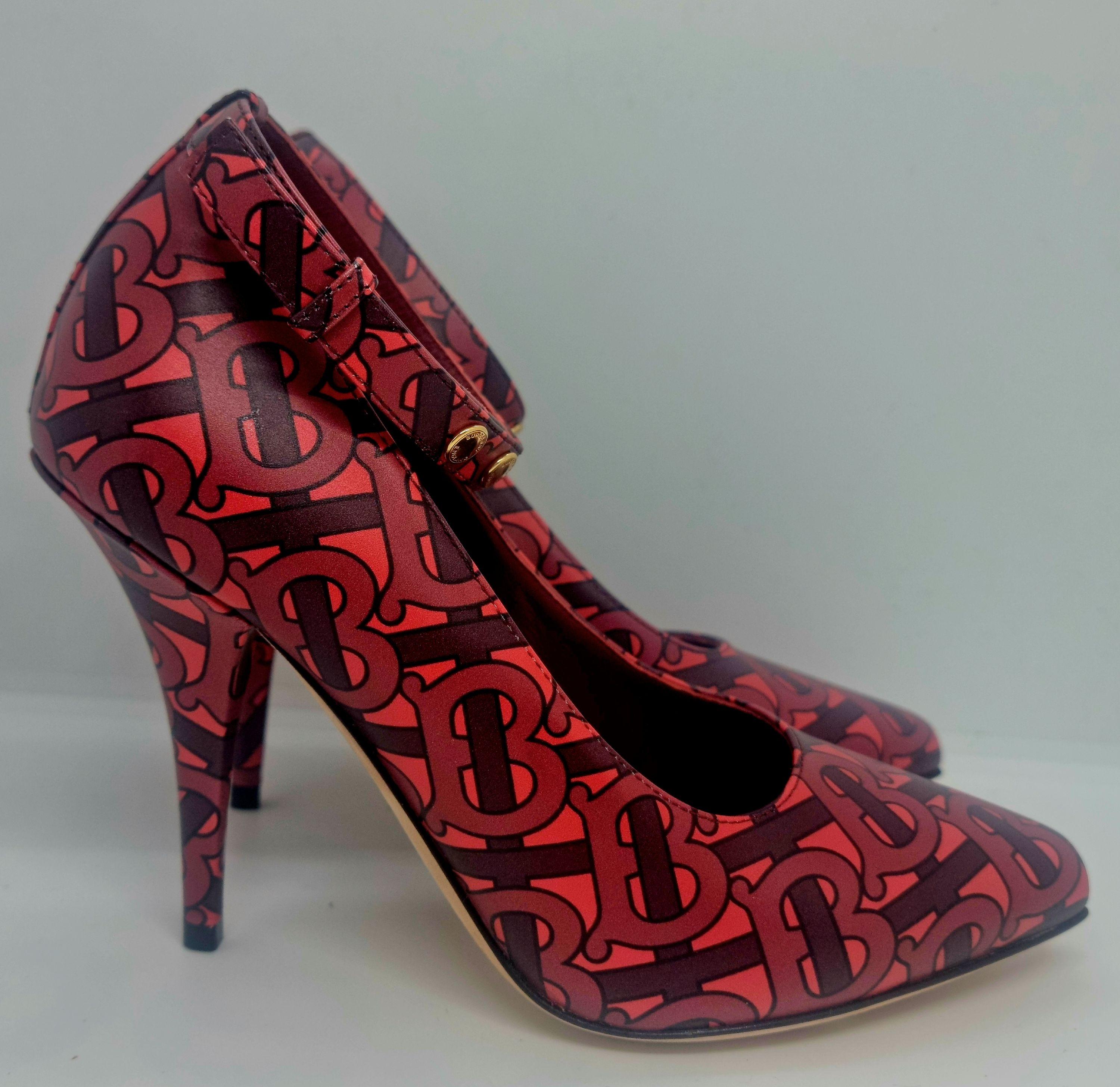 Featuring an ankle strap with a side buckle fastening, a pointed toe, a high heel, a branded insole and stud embellishment to ankle strap.