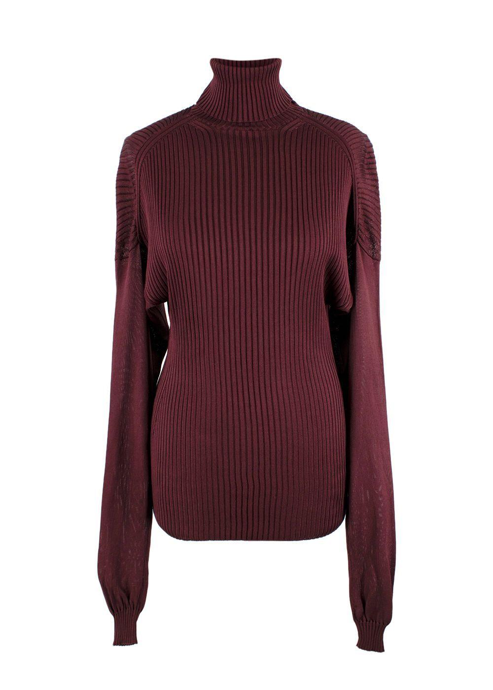 Burgundy Long Sleeve Ribbed Turtleneck Top