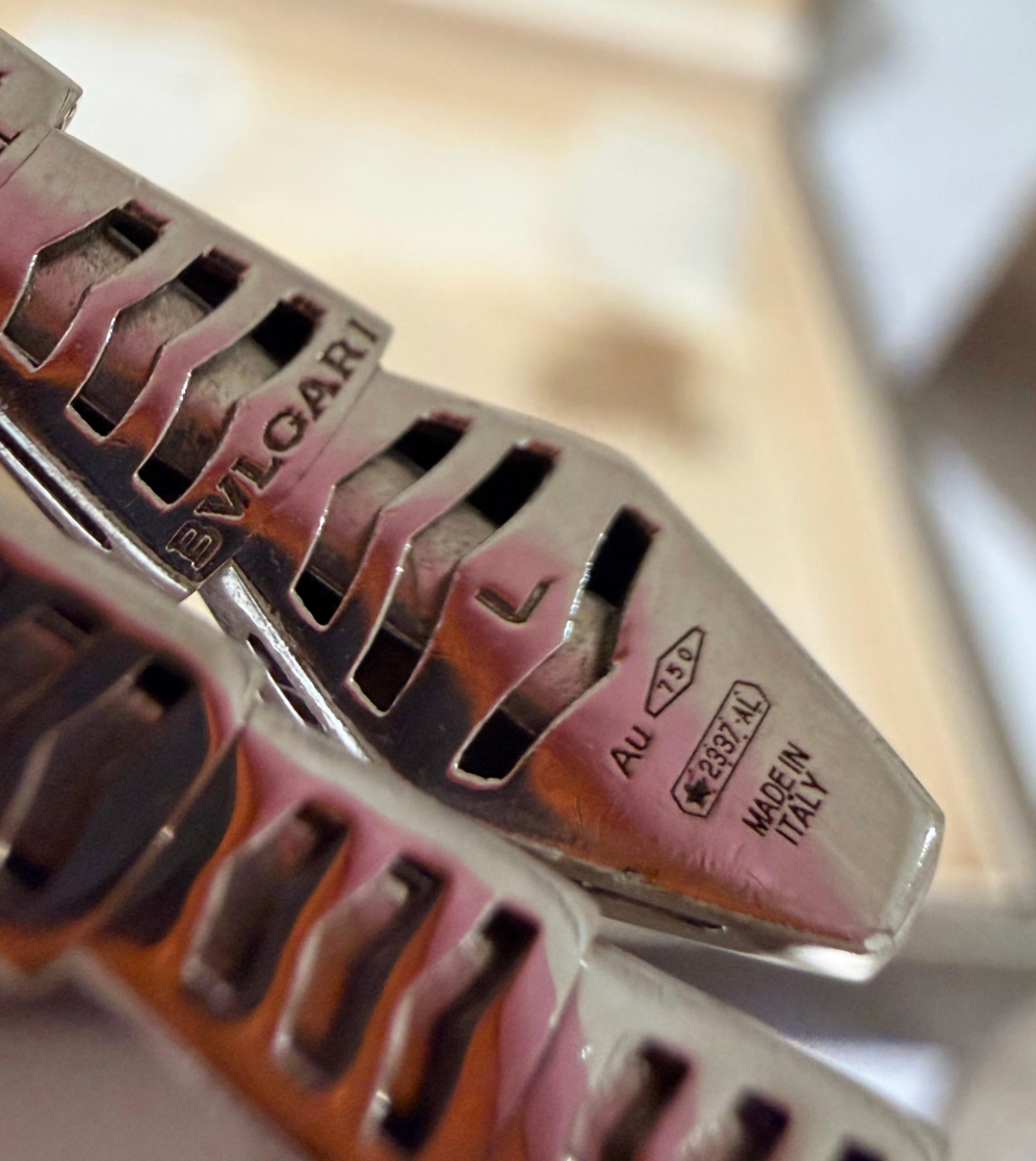 Bvlgari Serpenti Viper Bracelet in 18k white gold. BVLGARI bracelet Size large (19 cm) 18karat white gold Wraparound style. The bracelet is in the form of a serpent that coils around the wrist, has a gross weight of approx 28 grams.